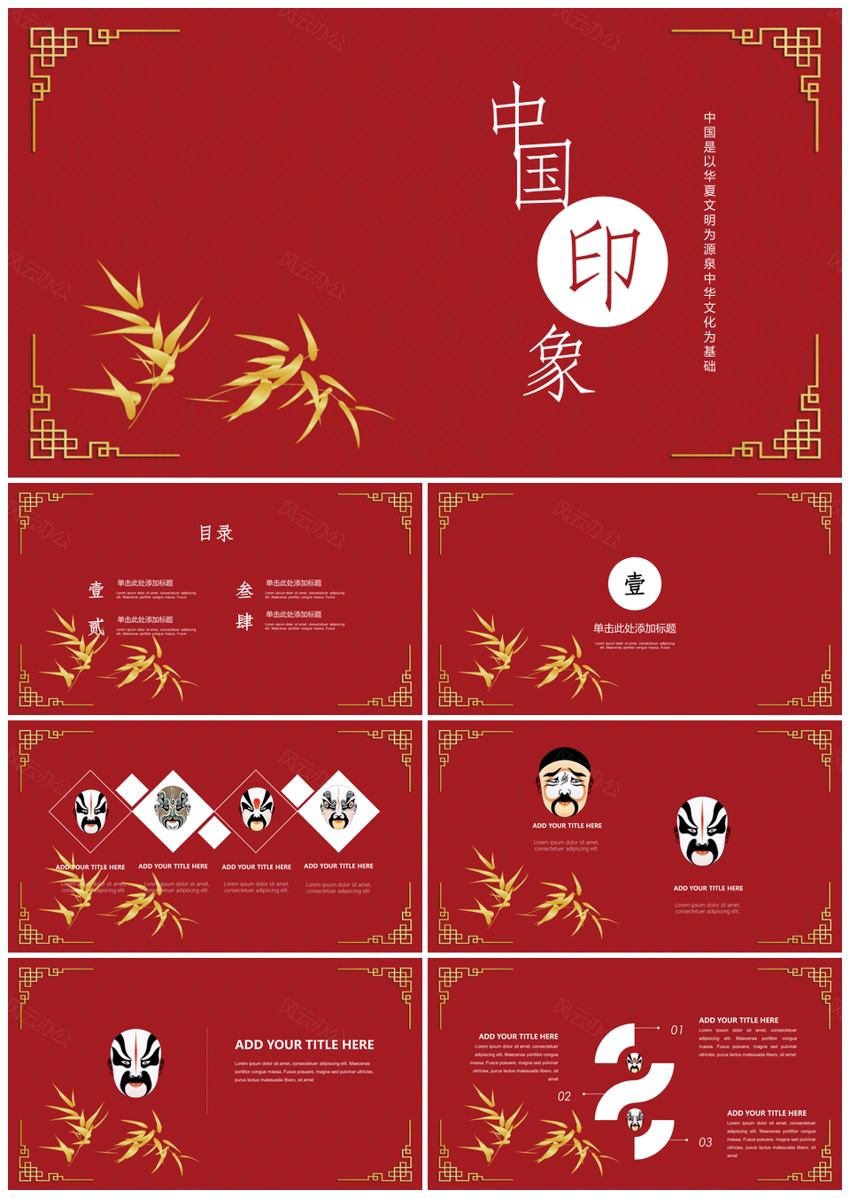 风云办公提供的红色中国风文化创意简约脸谱PPT模板,下载格式为pptx,一共8页,作品中文字及图均可以修改和编辑,图片更改请在作品中右键图片并更换,文字修改请直接点击文字进行修改。