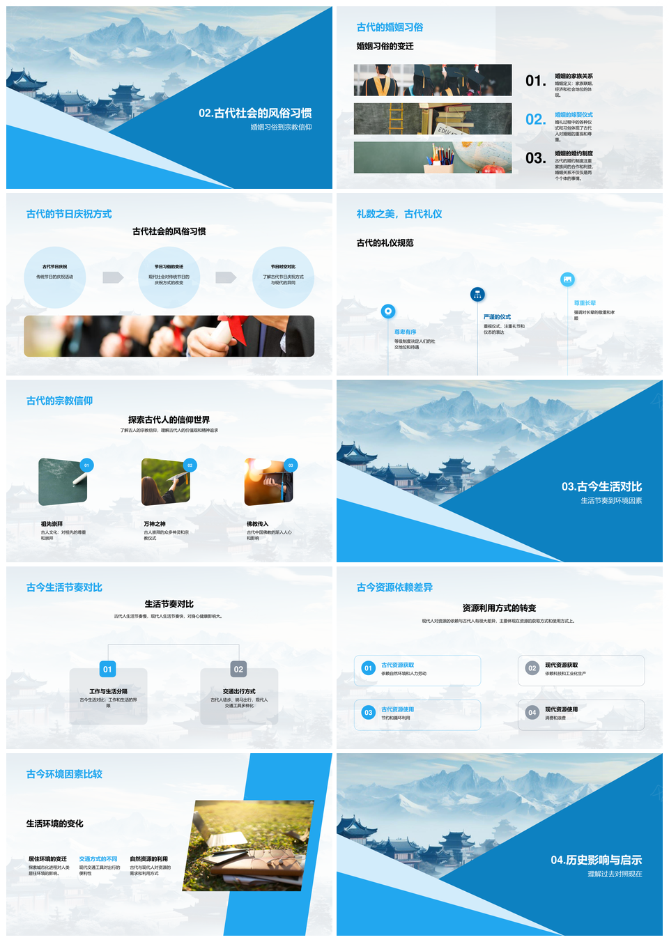 这是一张古今生活探秘古人日常饮食婚俗礼仪信仰建筑PPT模板,包含古今生活、探秘、古人、日常饮食、婚俗、礼仪、信仰、建筑等主题内容,也可用作探秘古人日常饮食、古人日常饮食婚俗、日常饮食婚俗礼仪、饮食婚俗礼仪信仰、婚俗礼仪信仰建筑、古今生活日常饮食、生活探秘婚俗礼仪、古人婚俗礼仪信仰、探秘古人日常、古人日常饮食、日常饮食婚俗、饮食婚俗礼仪、婚俗礼仪信仰、礼仪信仰建筑、饮食婚俗等PPT场景使用。 风云办公提供的古今生活探秘古人日常饮食婚俗礼仪信仰建筑PPT模板,下载格式为pptx,一共25页,作品中文字及图均可以修改和编辑,图片更改请在作品中右键图片并更换,文字修改请直接点击文字进行修改。