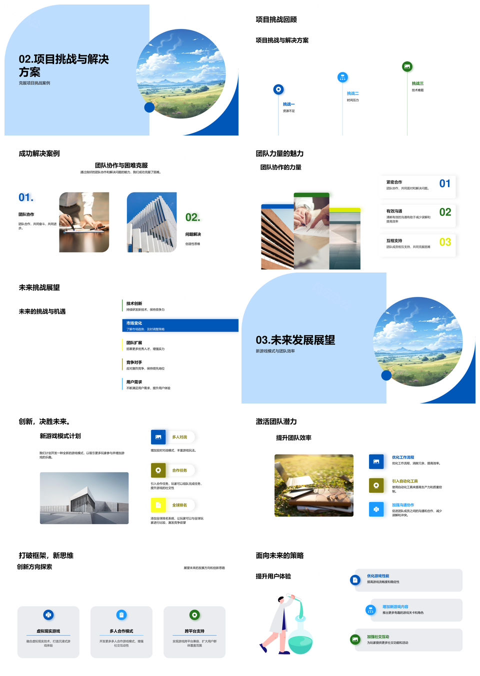 风云办公提供的梦幻团队协作开发新游挑战未来风景PPT模板,下载格式为pptx,一共28页,作品中文字及图均可以修改和编辑,图片更改请在作品中右键图片并更换,文字修改请直接点击文字进行修改。