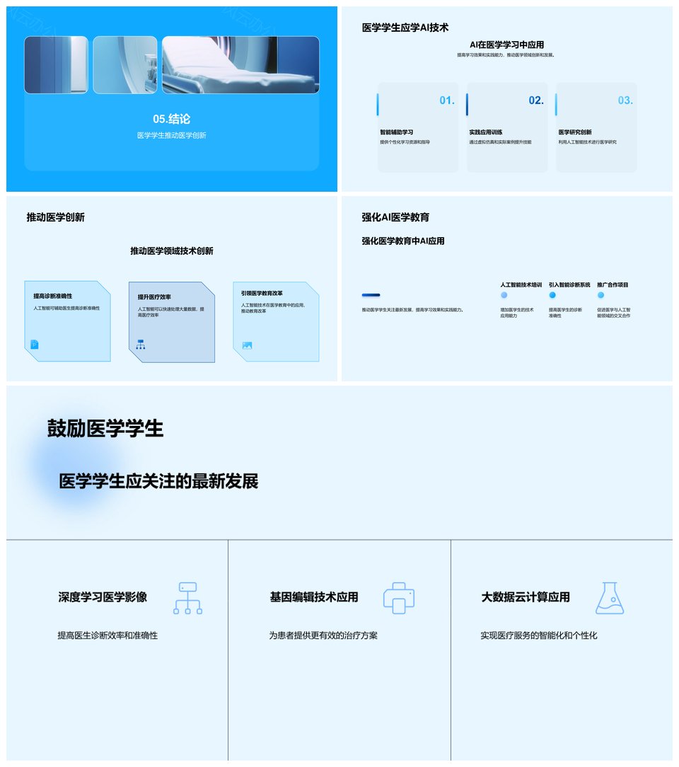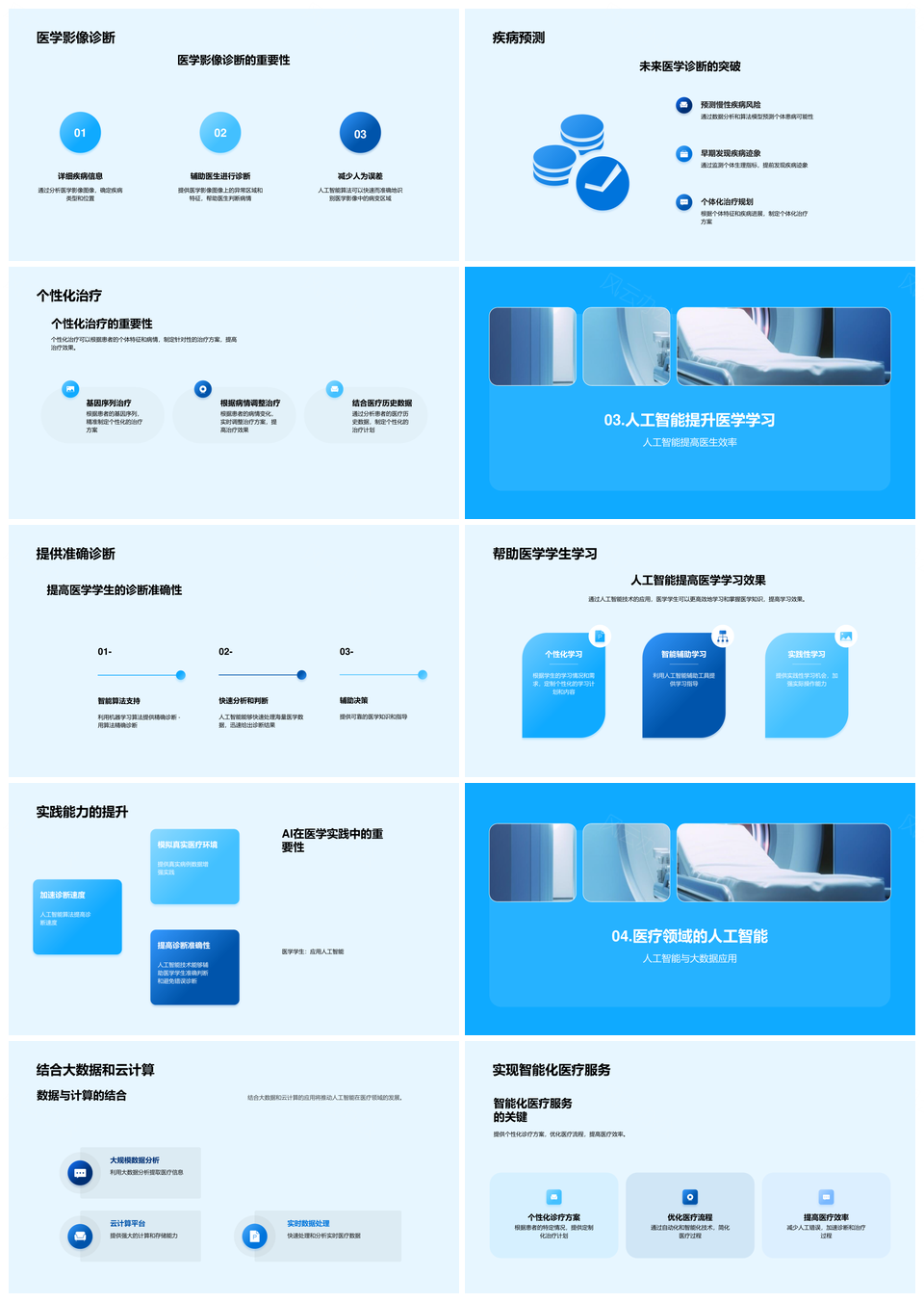 这是一张人工智能医疗诊断影像疾病预测个性化治疗PPT模板,包含人工智能、医疗、诊断、影像、疾病、预测、个性化、治疗等主题内容,也可用作人工智能医疗诊断影像、医疗诊断影像疾病预测、诊断影像疾病预测个性化、影像疾病预测个性化治疗、人工智能医疗诊断、医疗诊断影像疾病、诊断影像疾病预测、影像疾病预测个性化、疾病预测个性化治疗、人工智能医疗、医疗诊断、疾病预测、个性化治疗、人工智能医疗影像疾病、医疗影像疾病预测等PPT场景使用。 风云办公提供的人工智能医疗诊断影像疾病预测个性化治疗PPT模板,下载格式为pptx,一共23页,作品中文字及图均可以修改和编辑,图片更改请在作品中右键图片并更换,文字修改请直接点击文字进行修改。