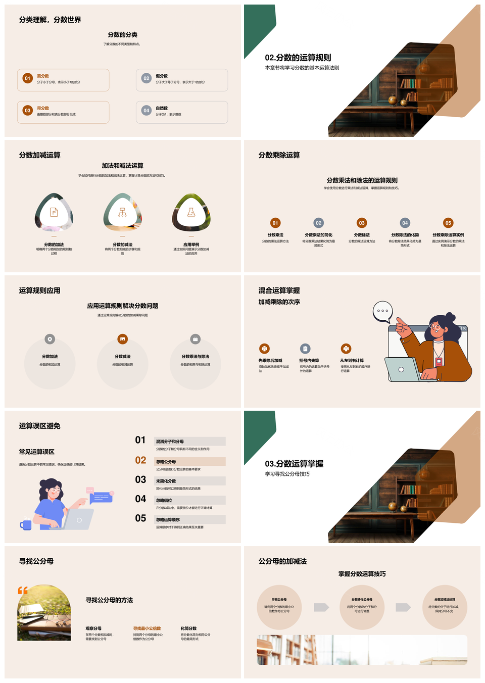 风云办公提供的分数运算公分母应用解题能力提升练习PPT模板,下载格式为pptx,一共33页,作品中文字及图均可以修改和编辑,图片更改请在作品中右键图片并更换,文字修改请直接点击文字进行修改。