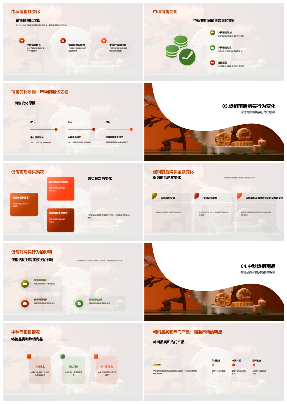 风云办公提供的便利店连锁中秋月饼促销销售数据分析PPT模板,下载格式为pptx,一共23页,作品中文字及图均可以修改和编辑,图片更改请在作品中右键图片并更换,文字修改请直接点击文字进行修改。