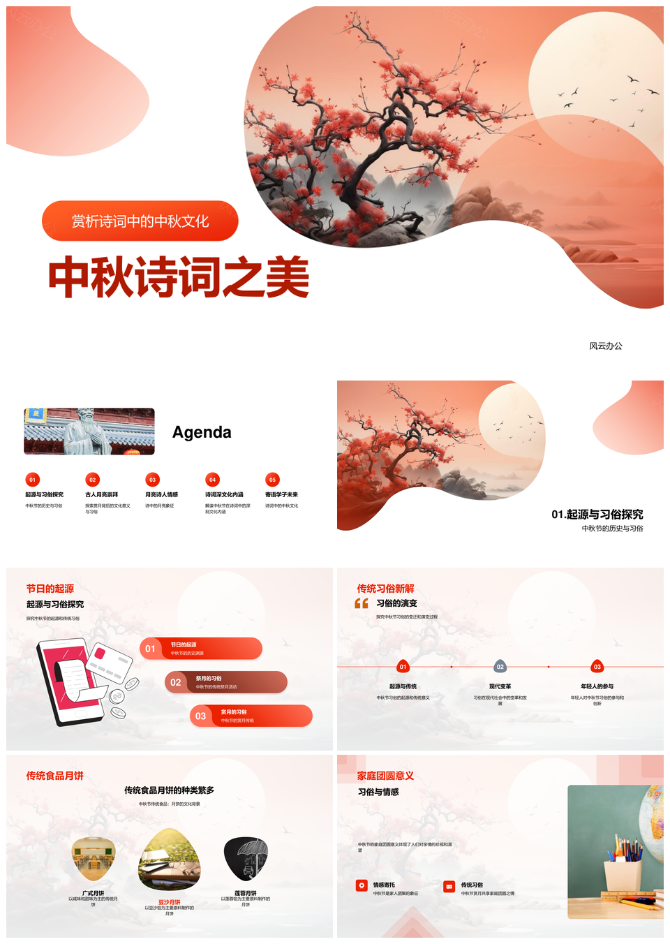风云办公提供的中秋诗词赏月习俗文化象征PPT模板,下载格式为pptx,一共33页,作品中文字及图均可以修改和编辑,图片更改请在作品中右键图片并更换,文字修改请直接点击文字进行修改。