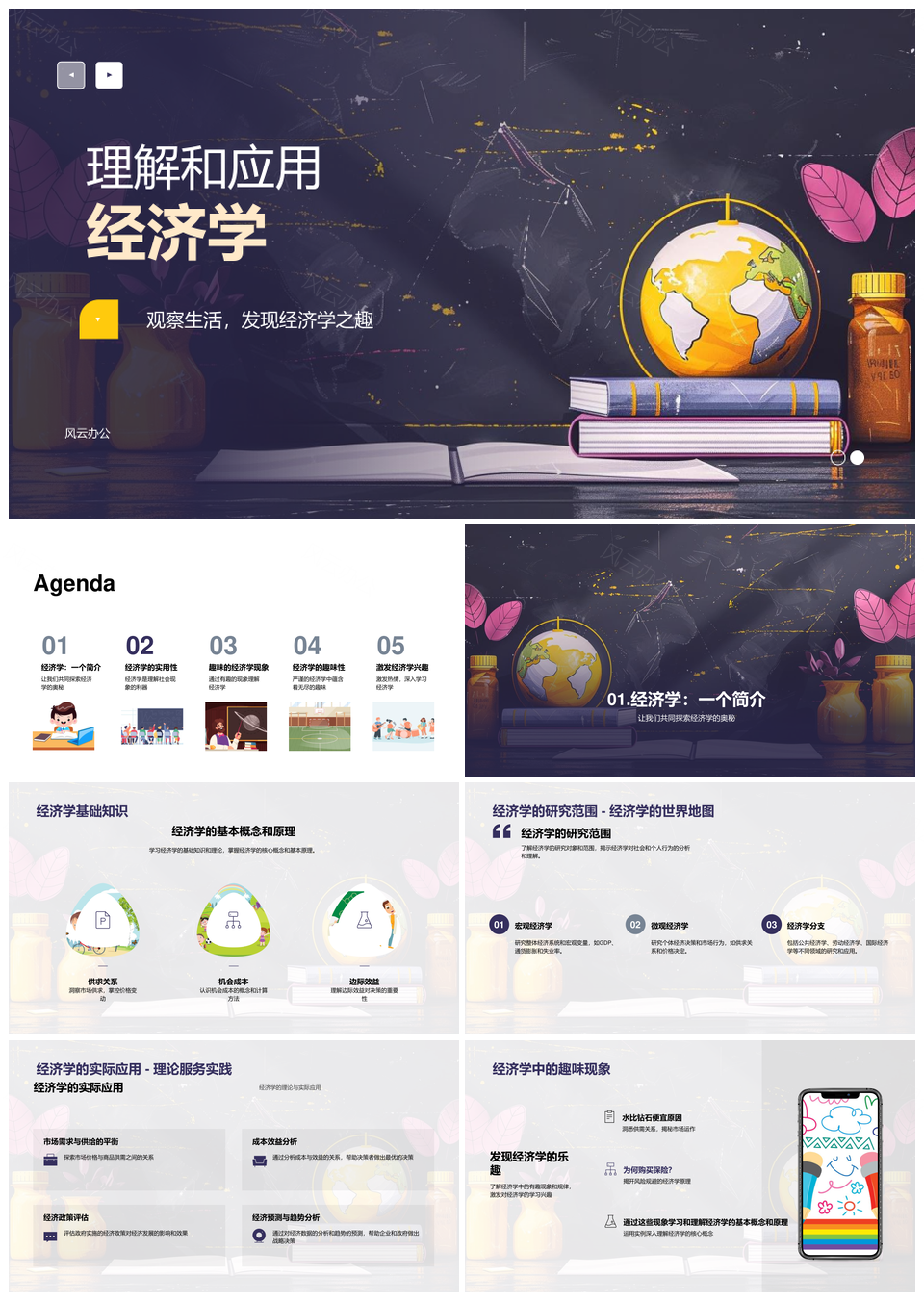 经济学原理生活应用解析个人宏观决策新闻政策图表PPT模板