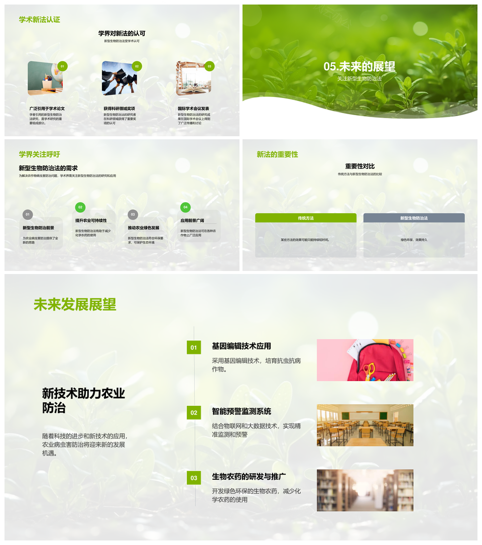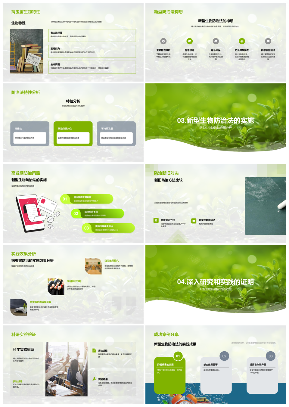 这是一张新型生物防治法绿色治理农作物病虫害实验验证PPT模板,包含新型、生物防治法、绿色、治理、农作物、病虫害、实验、验证等主题内容,也可用作新型生物防治法绿色治理农作物病虫害、绿色治理农作物病虫害实验验证、新型生物防治法绿色治理、生物防治法绿色治理农作物、农作物病虫害实验验证、新型生物防治法实验验证、绿色治理农作物病虫害、生物防治法治理农作物病虫害、新型生物防治法绿色、防治法绿色治理实验、新型生物绿色治理、绿色治理实验验证、农作物病虫害实验、生物防治法实验、实验验证等PPT场景使用。 风云办公提供的新型生物防治法绿色治理农作物病虫害实验验证PPT模板,下载格式为pptx,一共23页,作品中文字及图均可以修改和编辑,图片更改请在作品中右键图片并更换,文字修改请直接点击文字进行修改。