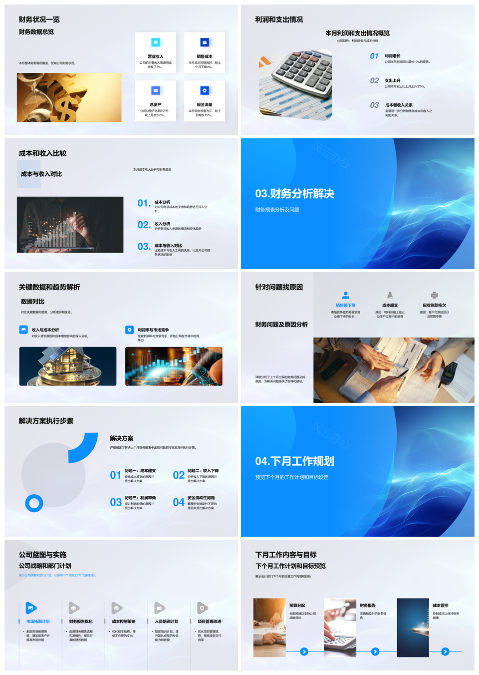 这是一张会计月报财务总结目标规划数据利润支出成本收入PPT模板,包含会计月报、财务总结、目标规划、数据、利润、支出、成本、收入等主题内容,也可用作会计月报财务总结、月报财务总结目标、财务总结目标规划、总结目标规划数据、目标规划数据利润、规划数据利润支出、数据利润支出成本、利润支出成本收入、会计月报财务、月报财务总结、财务总结目标、总结目标规划、目标规划数据、规划数据利润、数据利润支出等PPT场景使用。 风云办公提供的会计月报财务总结目标规划数据利润支出成本收入PPT模板,下载格式为pptx,一共24页,作品中文字及图均可以修改和编辑,图片更改请在作品中右键图片并更换,文字修改请直接点击文字进行修改。
