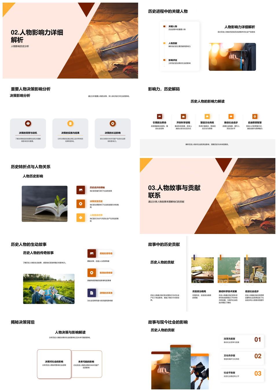 这是一张历史巨擘关键抉择贡献影响改变世界探秘PPT模板,包含历史、巨擘、关键、抉择、贡献、影响、改变、世界、探秘等主题内容,也可用作历史巨擘关键抉择、历史巨擘改变世界、关键抉择贡献影响、贡献影响改变世界、改变世界探秘历史、巨擘关键抉择贡献、抉择贡献影响改变、贡献影响改变世界探秘、历史巨擘关键贡献、关键抉择改变世界、影响改变世界探秘、历史巨擘贡献影响、巨擘改变世界探秘、历史巨擘世界探秘、关键抉择影响改变等PPT场景使用。 风云办公提供的历史巨擘关键抉择贡献影响改变世界探秘PPT模板,下载格式为pptx,一共28页,作品中文字及图均可以修改和编辑,图片更改请在作品中右键图片并更换,文字修改请直接点击文字进行修改。