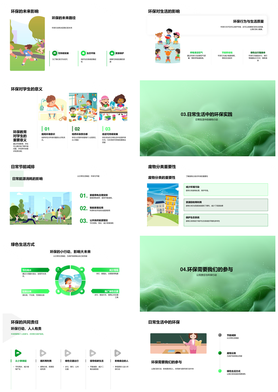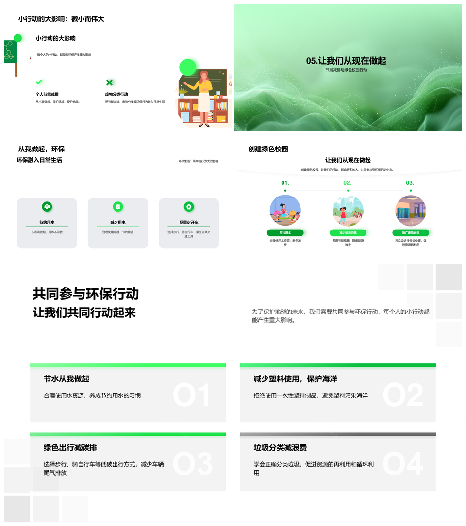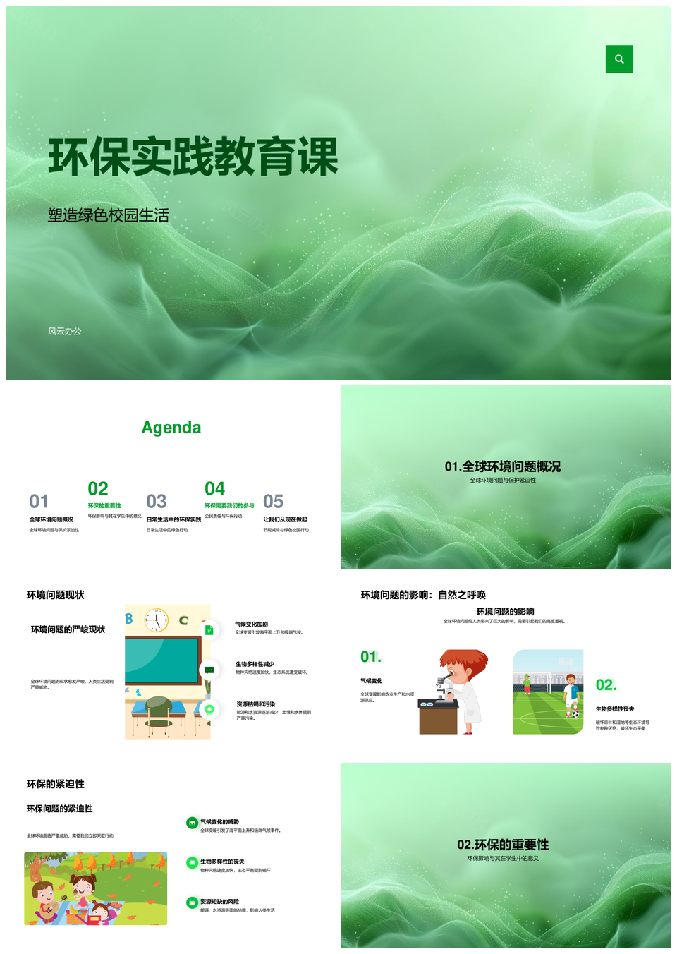 风云办公提供的环保实践教育共建绿色校园节能分类PPT模板,下载格式为pptx,一共23页,作品中文字及图均可以修改和编辑,图片更改请在作品中右键图片并更换,文字修改请直接点击文字进行修改。