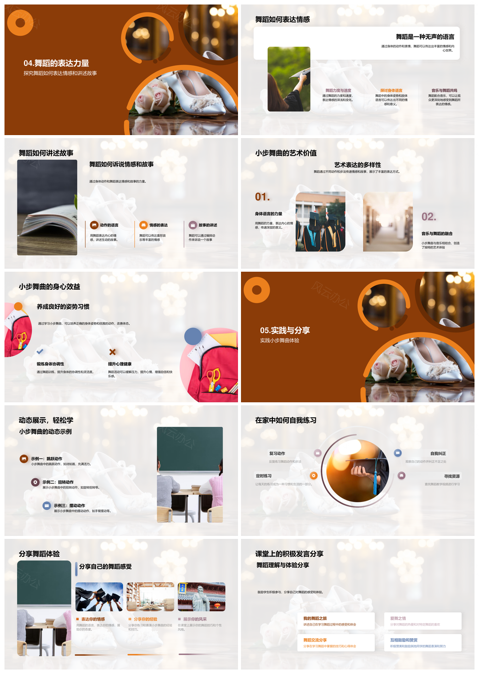 小学小步舞曲舞蹈艺术技巧教学课件芭蕾舞鞋PPT模板推荐