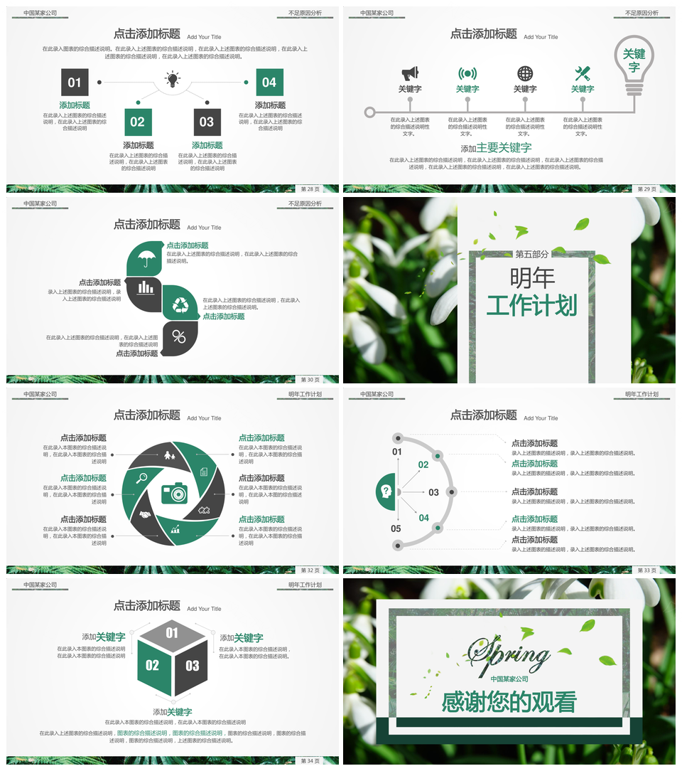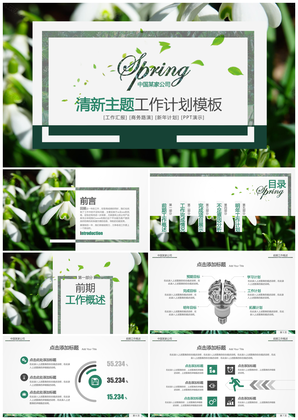 绿色清新简约工作计划毕业答辩教学课件春天主题通用PPT模板