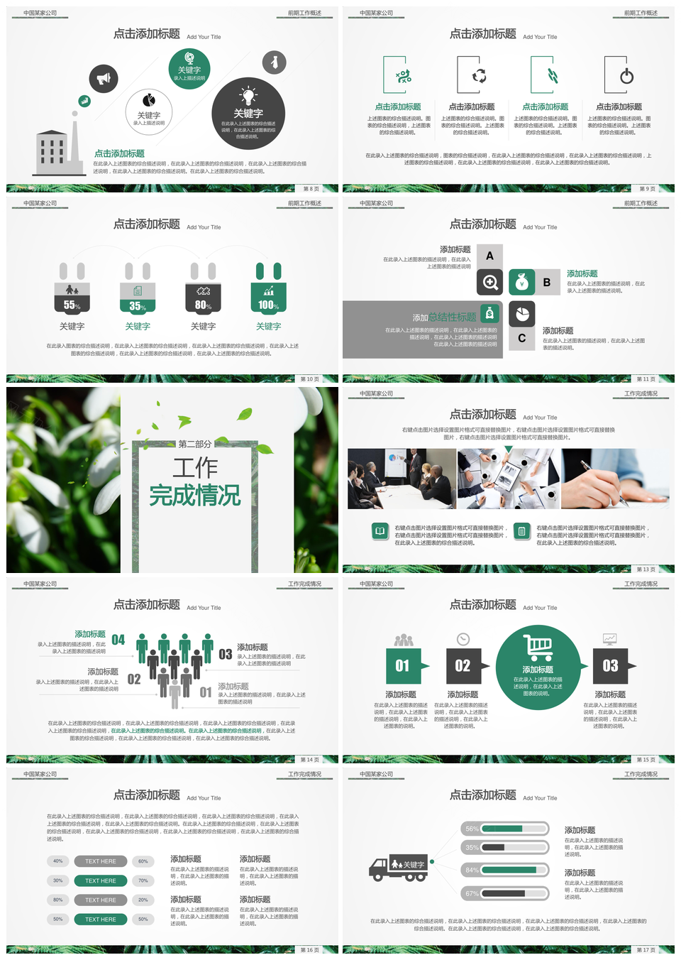 绿色唯美清新商务工作计划总结汇报通用动态PPT模板