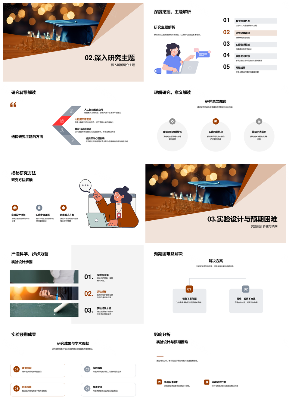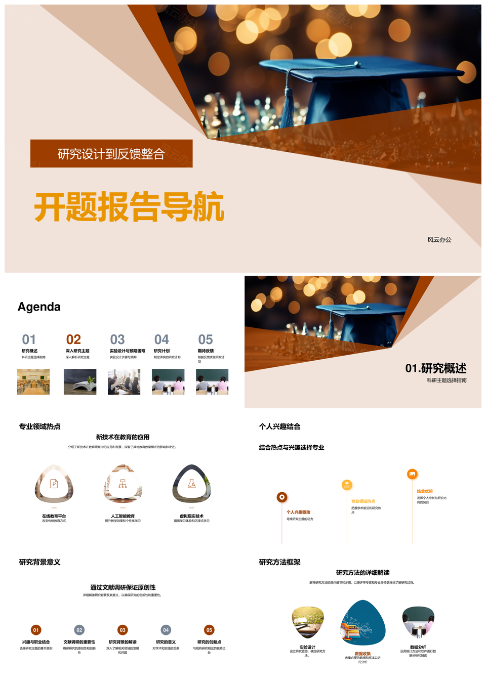 毕业帽开题报告研究设计反馈整合实验成果PPT模板
