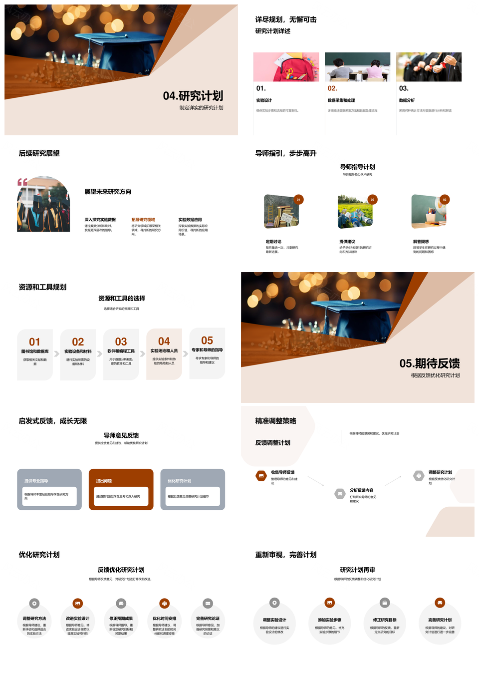 毕业帽开题报告研究设计反馈整合实验成果PPT模板推荐