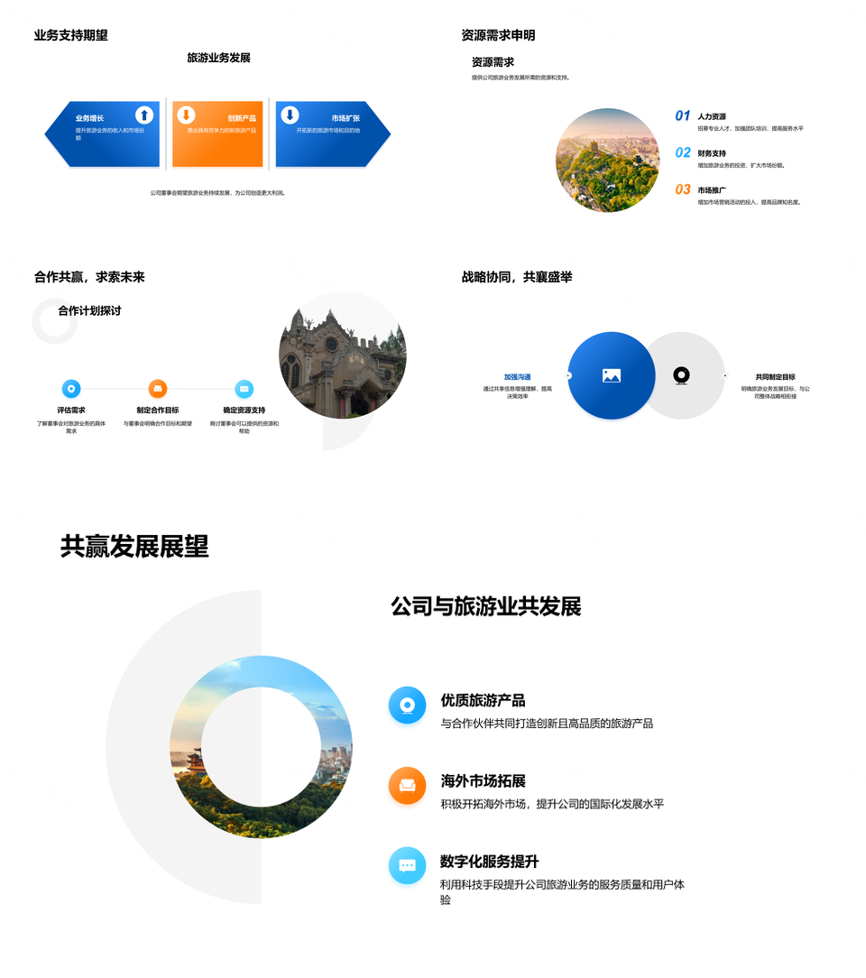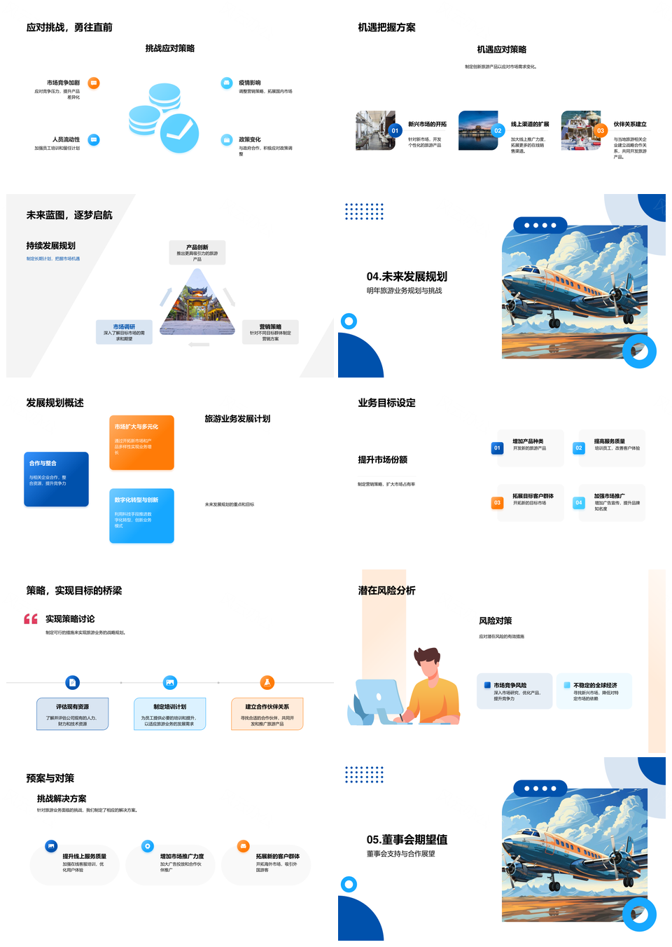 风云办公提供的旅游业务年度趋势挑战机遇发展规划PPT模板,下载格式为pptx,一共33页,作品中文字及图均可以修改和编辑,图片更改请在作品中右键图片并更换,文字修改请直接点击文字进行修改。