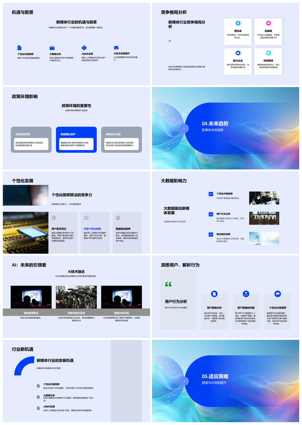 新媒体行业发展趋势与AI大数据提升策略分析PPT模板推荐