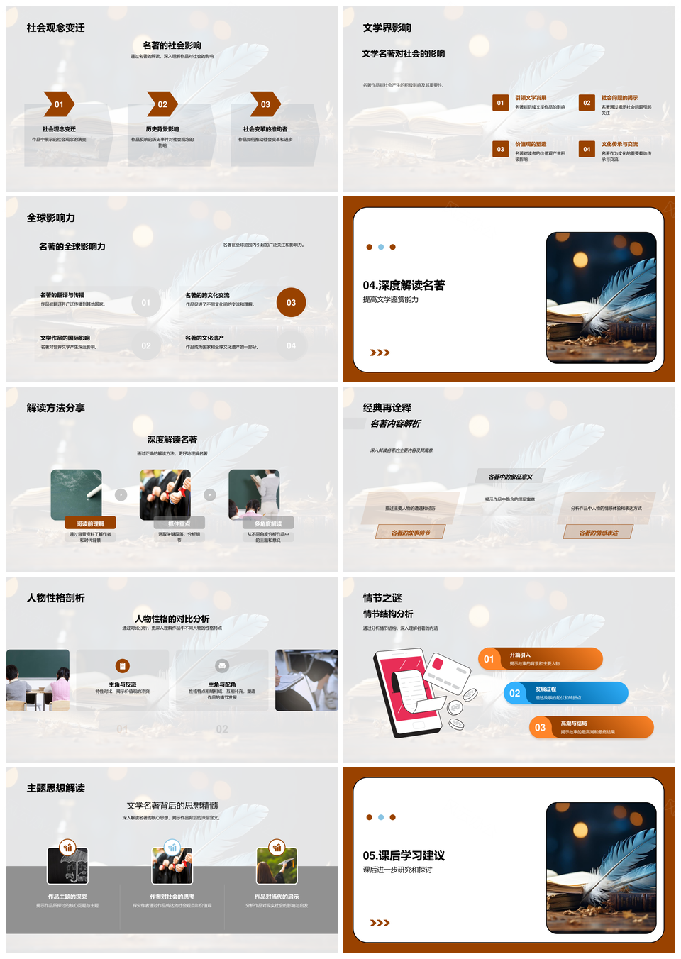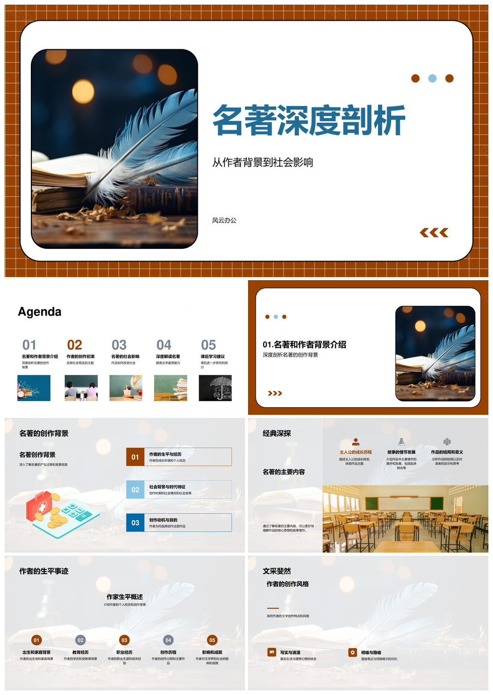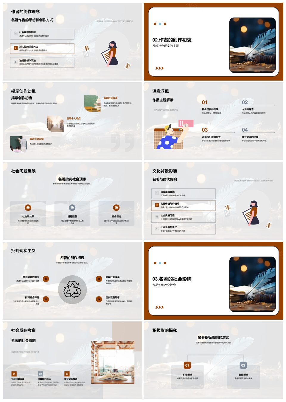 风云办公提供的名著社会背景与批判视角文学解析PPT模板,下载格式为pptx,一共33页,作品中文字及图均可以修改和编辑,图片更改请在作品中右键图片并更换,文字修改请直接点击文字进行修改。