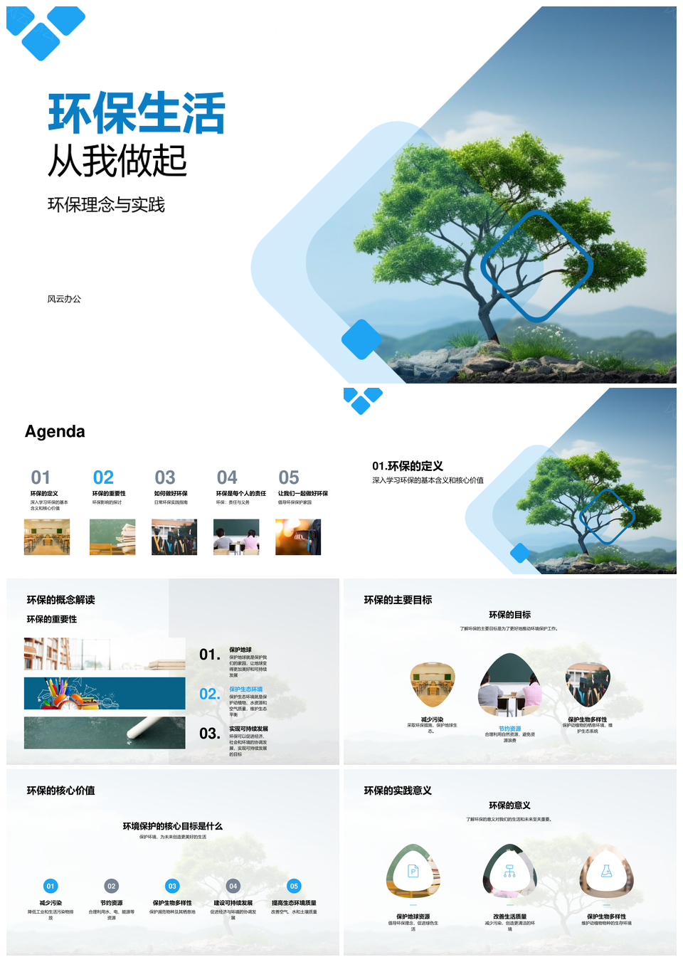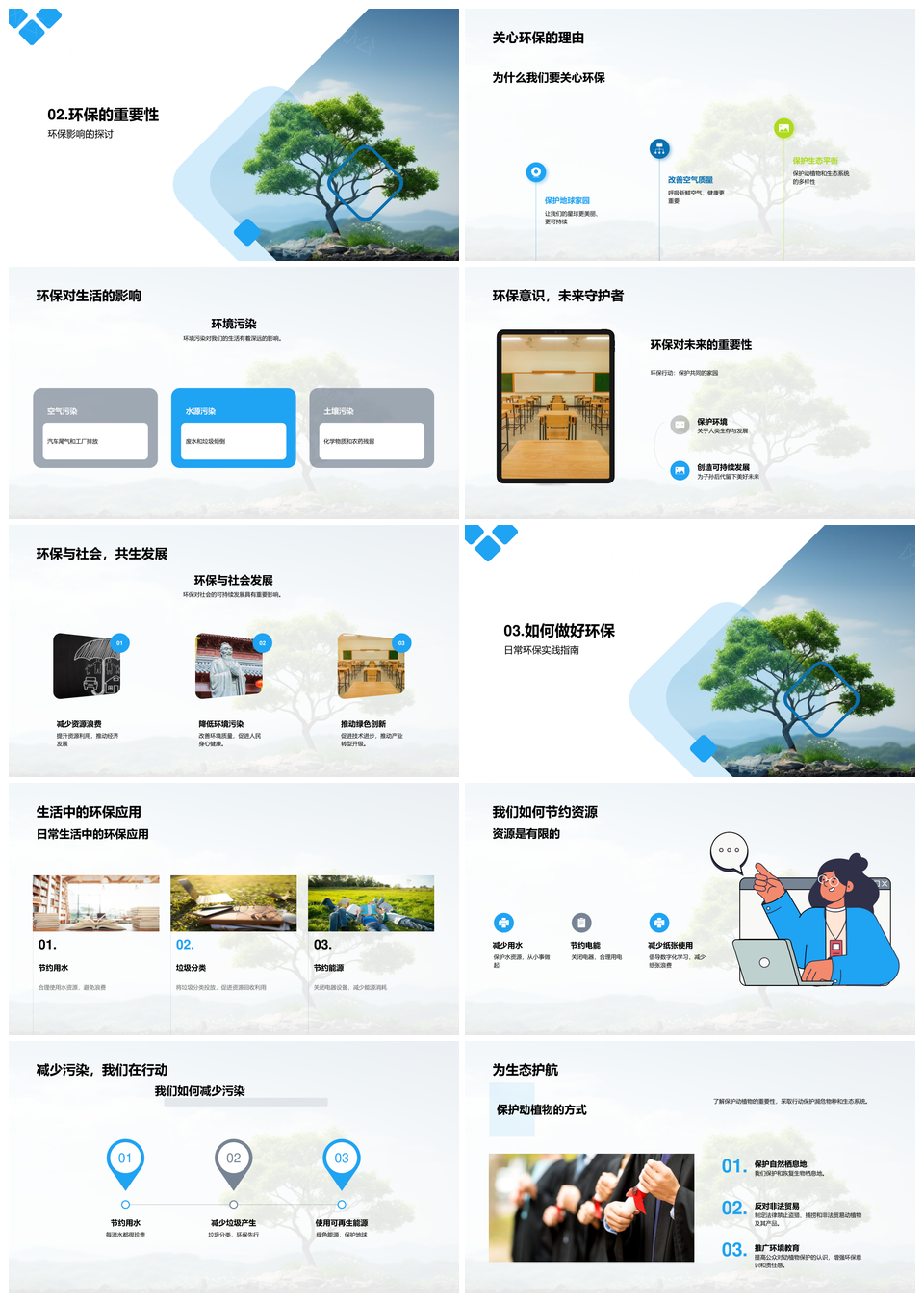 环保生活践行理念节约资源保护生态PPT模板推荐