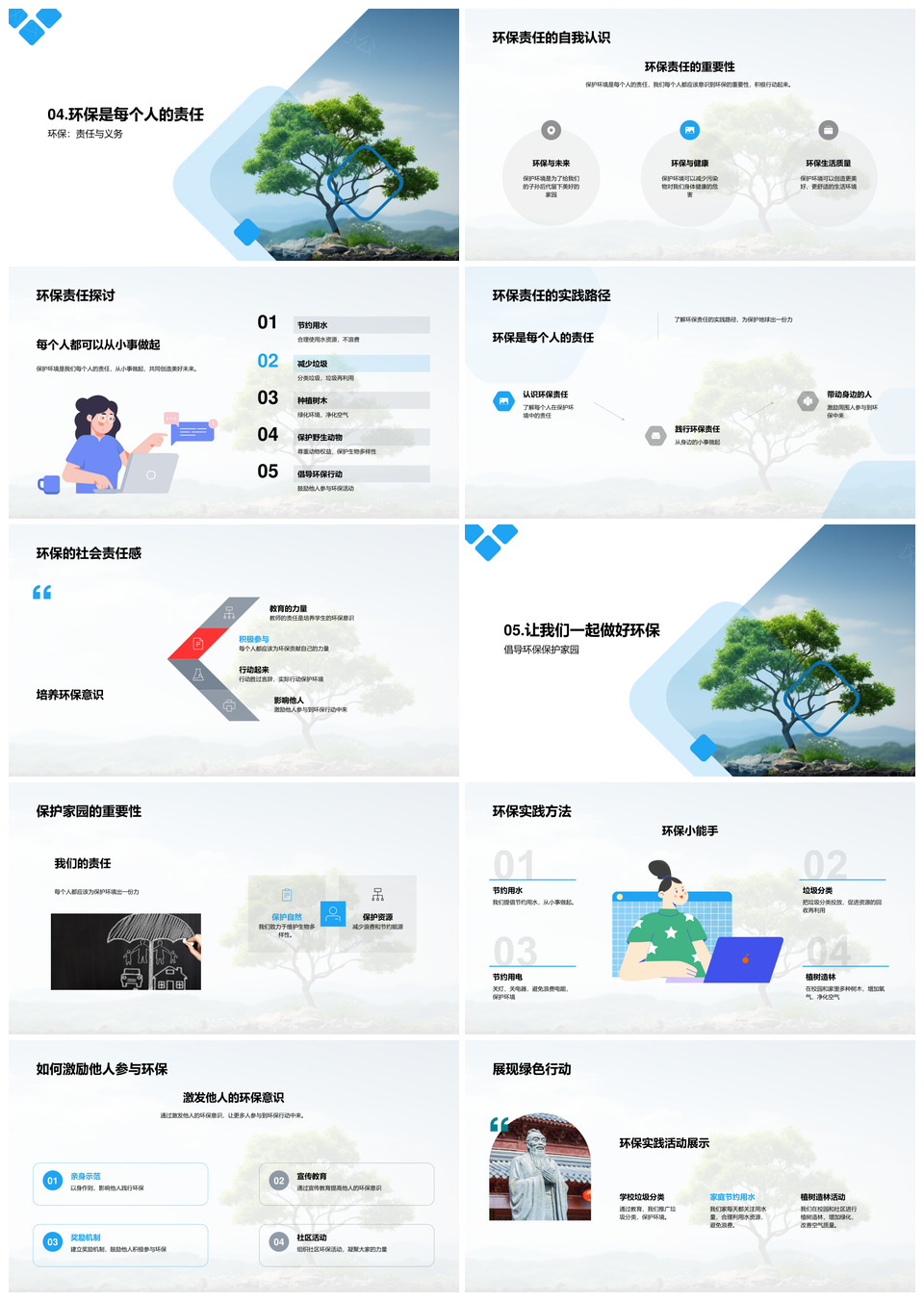 环保生活行动分类节水减塑提升质量健康PPT模板