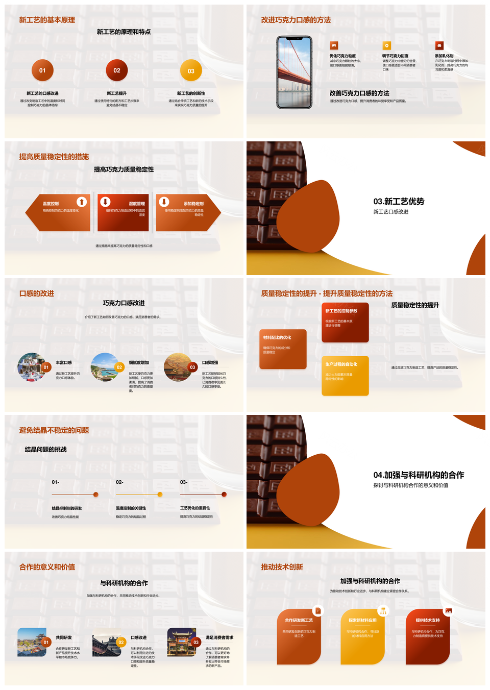 这是一张巧克力制造工程师技术分享会革新工艺纪元PPT模板,包含巧克力制造、工程师、技术分享会、革新、工艺、纪元等主题内容,也可用作巧克力制造工程师技术分享会革新工艺纪元、巧克力制造工程师技术分享会、制造工程师技术分享会革新、工程师技术分享会革新工艺、技术分享会革新工艺纪元、巧克力制造工程师技术、制造工程师技术分享会革新、工程师技术分享会革新工艺纪元、技术分享会革新工艺、巧克力制造工程师、制造工程师技术分享会、工程师技术分享会革新、技术分享会革新工艺纪元、革新工艺纪元、工艺纪元等PPT场景使用。 风云办公提供的巧克力制造工程师技术分享会革新工艺纪元PPT模板,下载格式为pptx,一共23页,作品中文字及图均可以修改和编辑,图片更改请在作品中右键图片并更换,文字修改请直接点击文字进行修改。