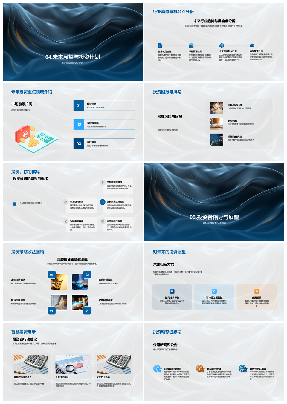 这是一张长期投资策略市场分析风险管理收益组合月报PPT模板,包含长期、投资策略、市场、分析、风险、管理、收益、月报等主题内容,也可用作长期投资策略市场分析、长期投资策略风险管理、长期投资市场分析风险管理、投资策略市场分析风险管理、市场分析风险管理收益月报、长期投资风险管理收益月报、长期投资策略收益月报、长期投资市场分析收益月报、投资策略风险管理收益月报、风险管理收益月报市场分析、长期投资策略、市场分析风险管理、收益月报长期投资、风险管市场分析、投资策略收益月报等PPT场景使用。 风云办公提供的长期投资策略市场分析风险管理收益组合月报PPT模板,下载格式为pptx,一共28页,作品中文字及图均可以修改和编辑,图片更改请在作品中右键图片并更换,文字修改请直接点击文字进行修改。