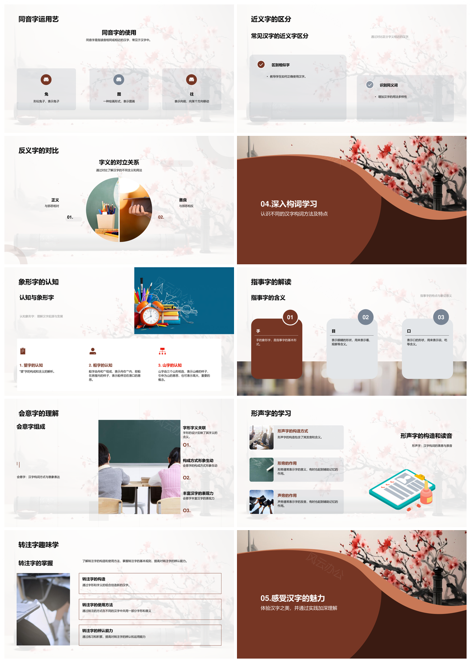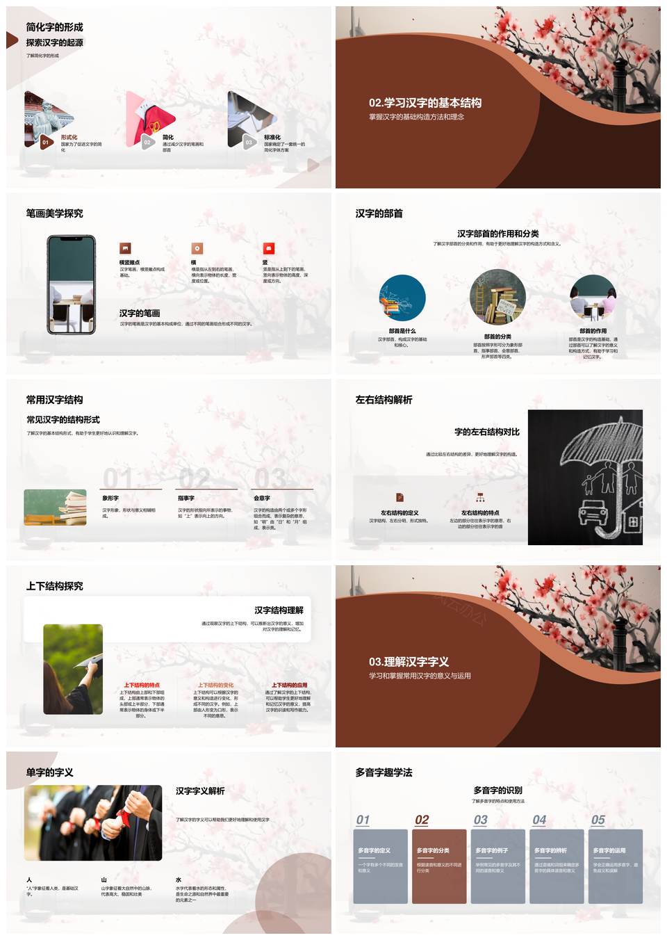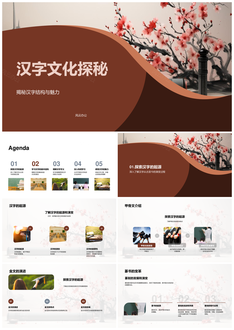 风云办公提供的汉字起源结构演变甲骨篆简探秘PPT模板,下载格式为pptx,一共33页,作品中文字及图均可以修改和编辑,图片更改请在作品中右键图片并更换,文字修改请直接点击文字进行修改。