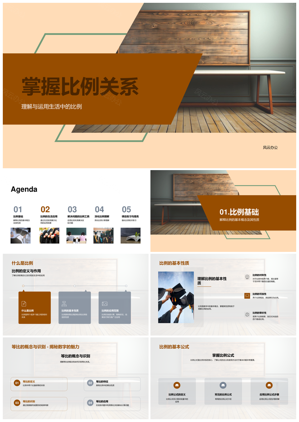 风云办公提供的掌握比例关系应用与折扣等比计算技巧PPT模板,下载格式为pptx,一共33页,作品中文字及图均可以修改和编辑,图片更改请在作品中右键图片并更换,文字修改请直接点击文字进行修改。