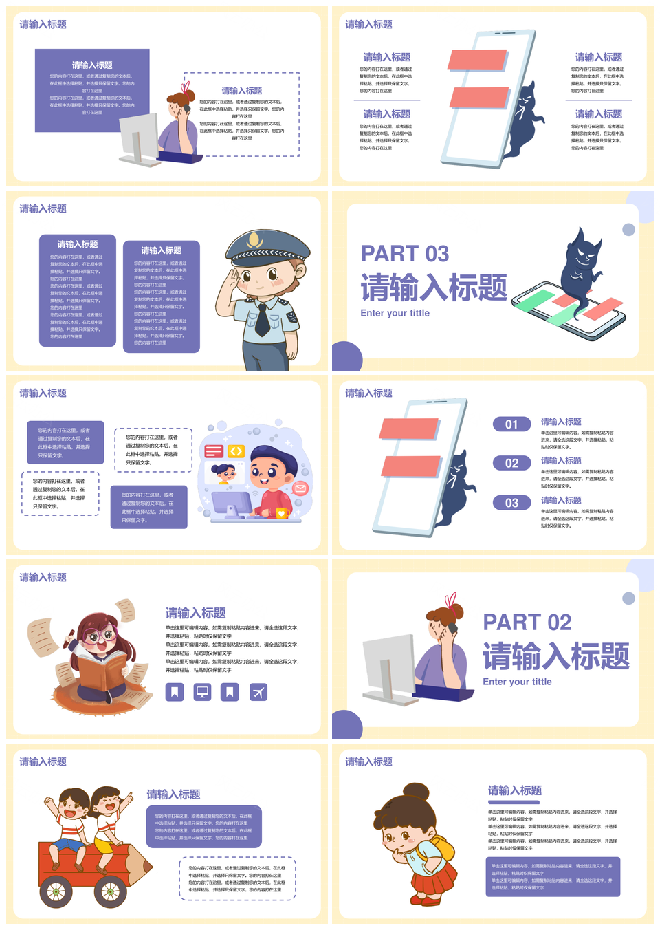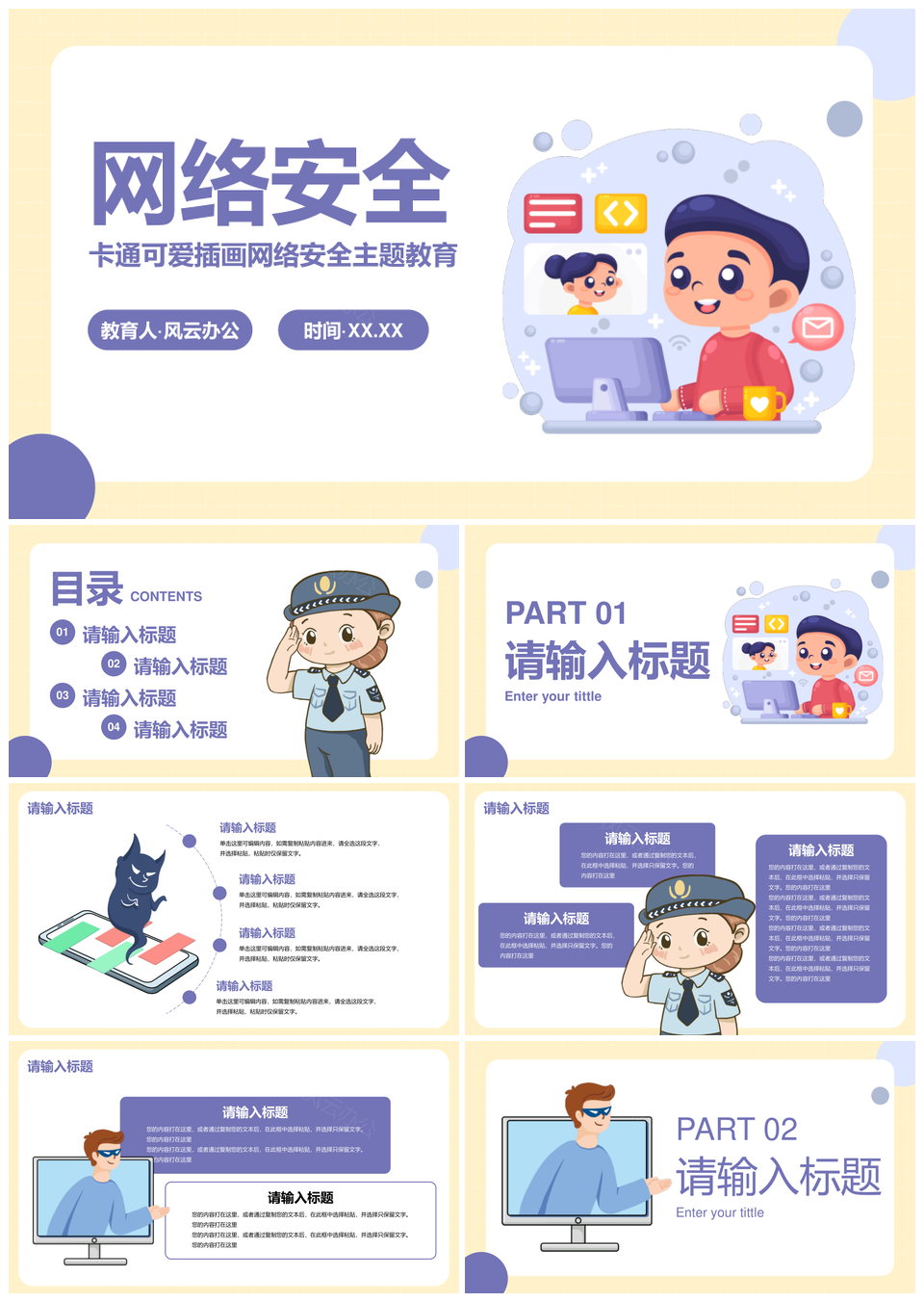 卡通可爱插画网络安全主题教育PPT模板推荐