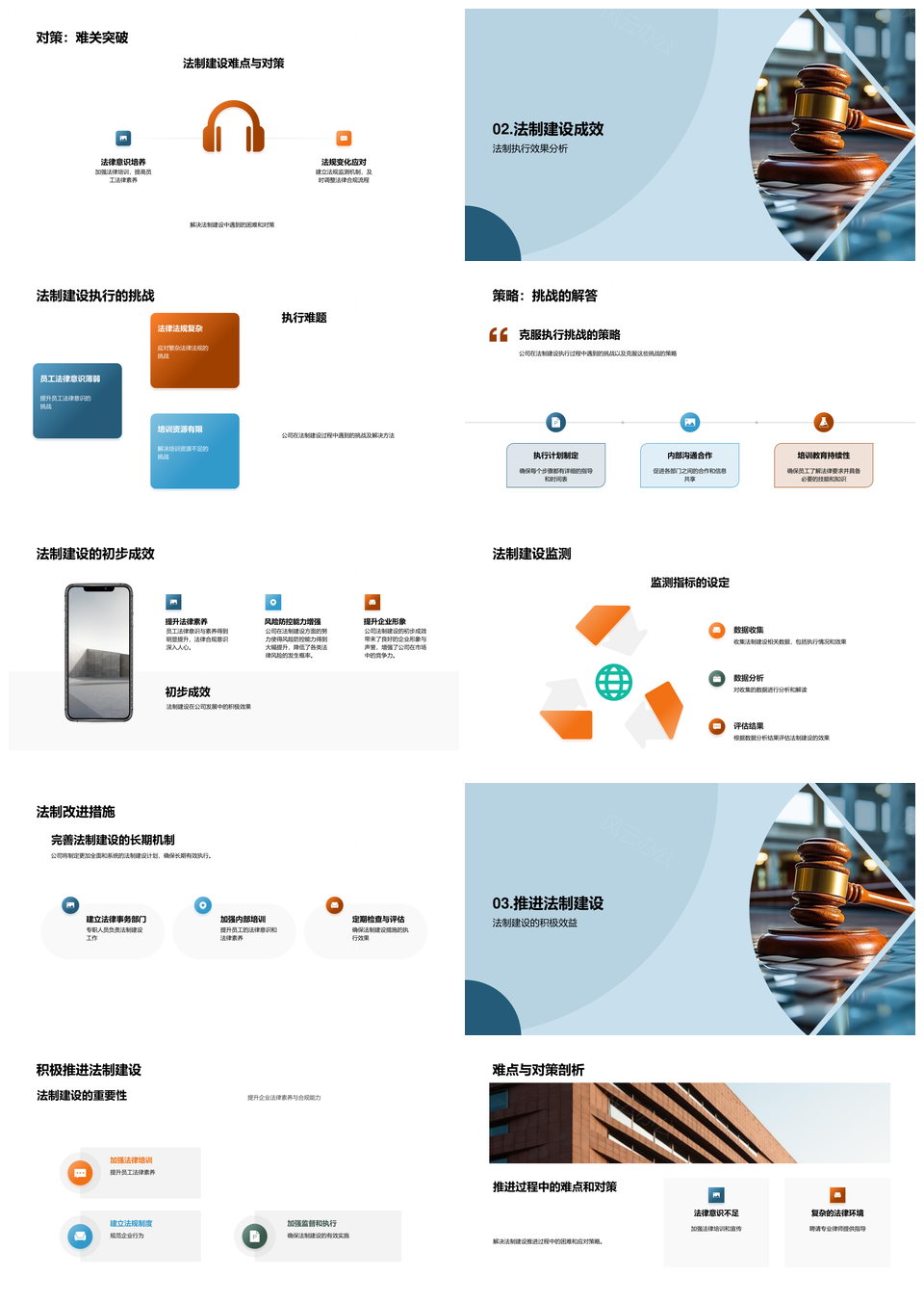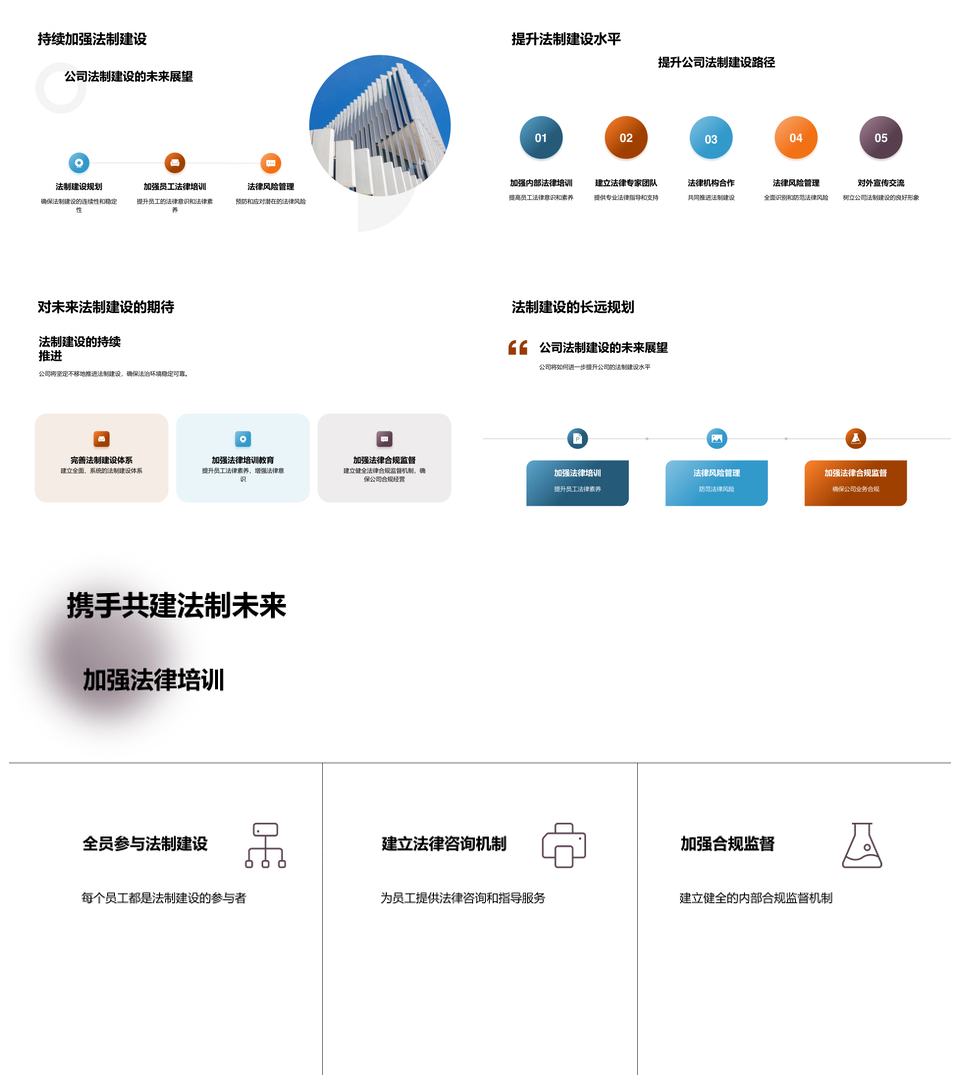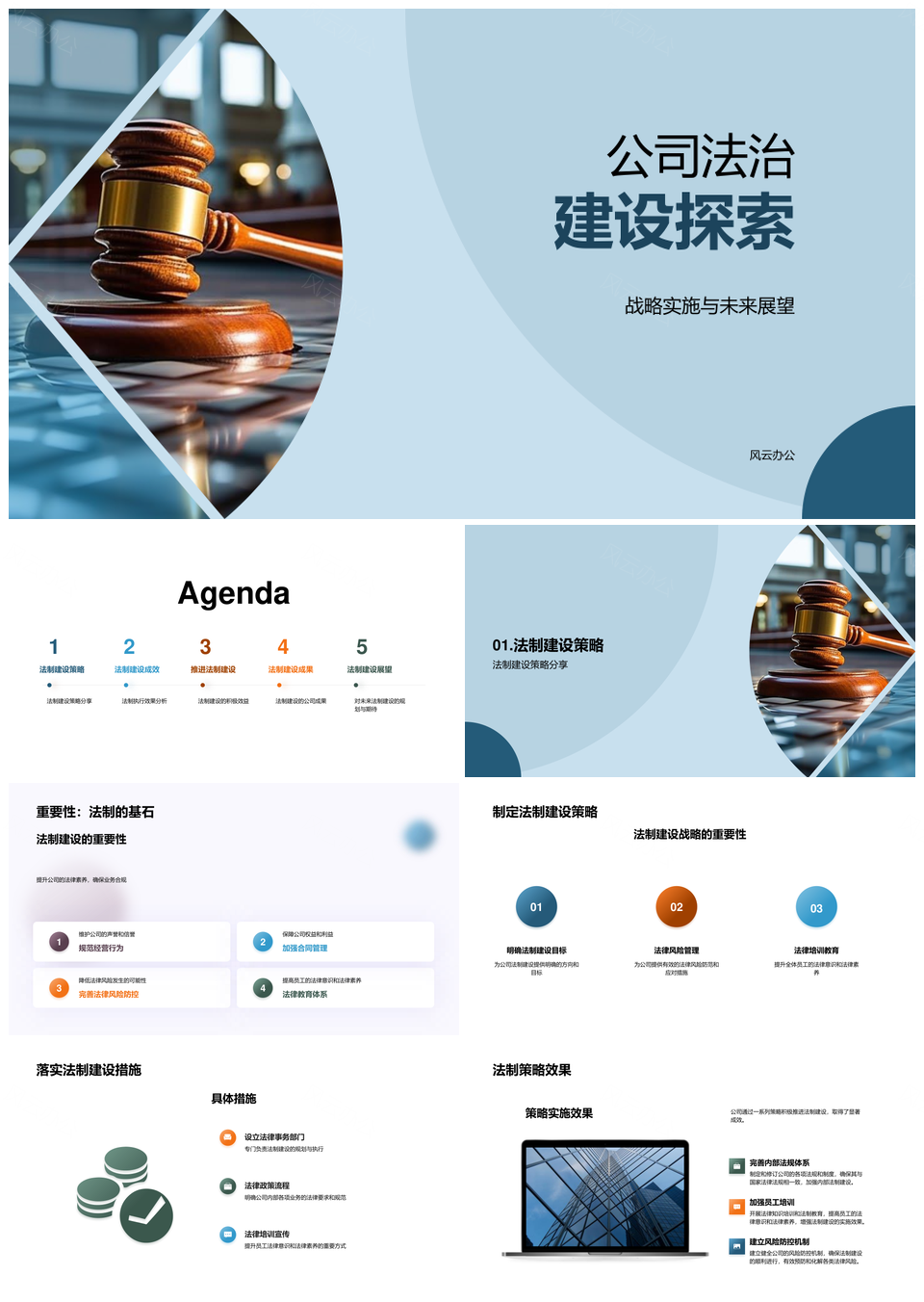 风云办公提供的公司法治建设战略推进与未来展望PPT模板,下载格式为pptx,一共33页,作品中文字及图均可以修改和编辑,图片更改请在作品中右键图片并更换,文字修改请直接点击文字进行修改。