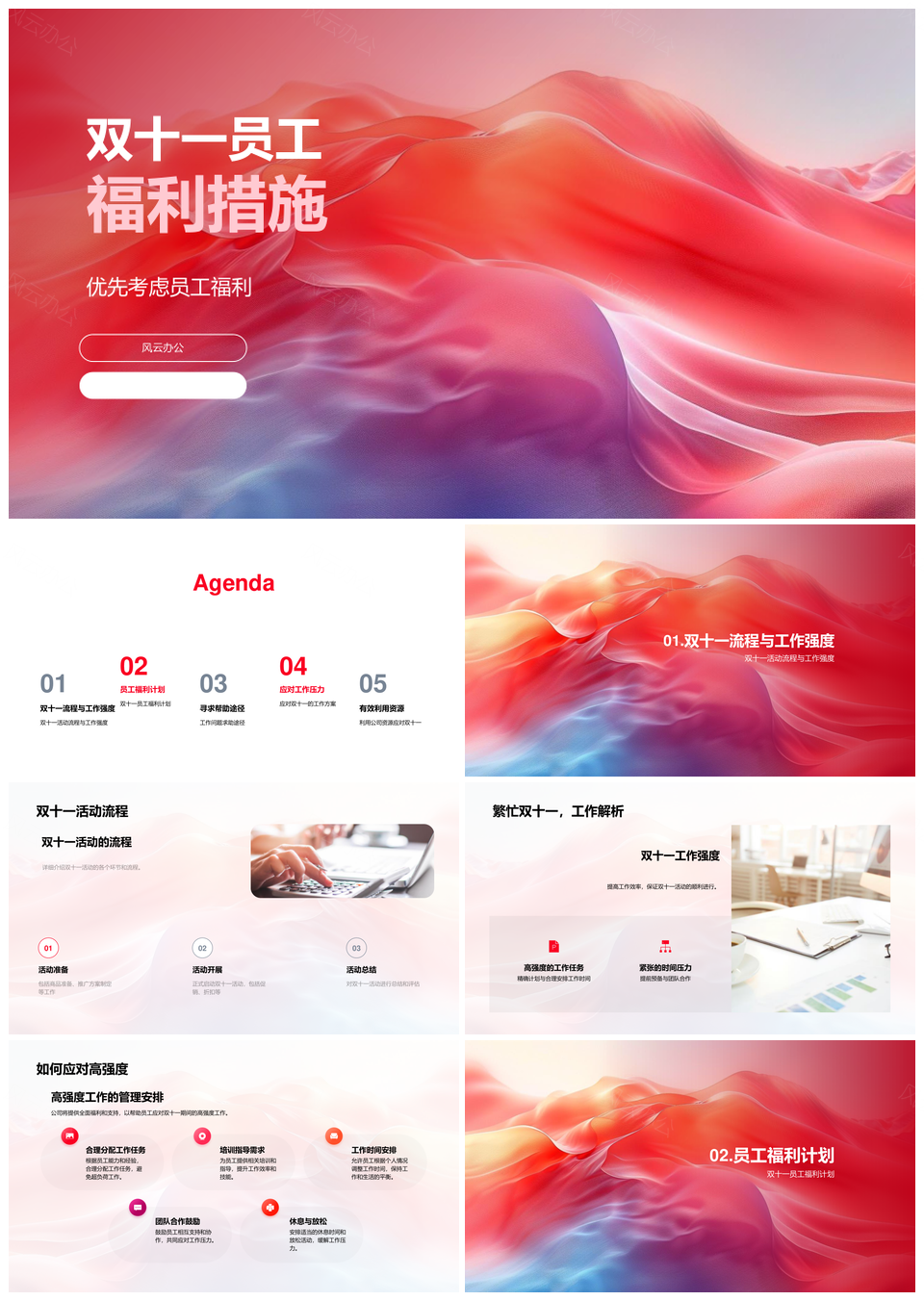 这是一张双十一电商员工高强度工作福利措施计划PPT模板,包含双十一、电商、员工、高强度、工作、福利、措施、计划等主题内容,也可用作双十一电商员工高强度工作、电商员工高强度工作福利、员工高强度工作福利措施、高强度工作福利措施计划、双十一电商员工福利措施、双十一电商高强度工作福利、电商高强度工作福利措施、员工工作福利措施计划、双十一高强度工作措施计划、电商员工福利措施计划、双十一电商工作措施计划、电商员工高强度福利、双十一员工福利计划、高强度工作措施、福利措施计划等PPT场景使用。 风云办公提供的双十一电商员工高强度工作福利措施计划PPT模板,下载格式为pptx,一共23页,作品中文字及图均可以修改和编辑,图片更改请在作品中右键图片并更换,文字修改请直接点击文字进行修改。