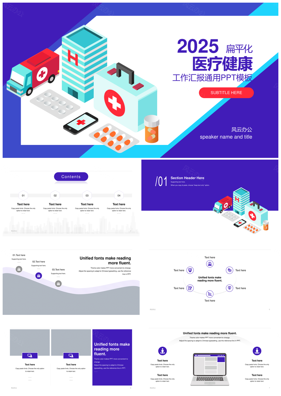 风云办公提供的2025医疗健康工作总结扁平化汇报PPT模板,下载格式为pptx,一共39页,作品中文字及图均可以修改和编辑,图片更改请在作品中右键图片并更换,文字修改请直接点击文字进行修改。