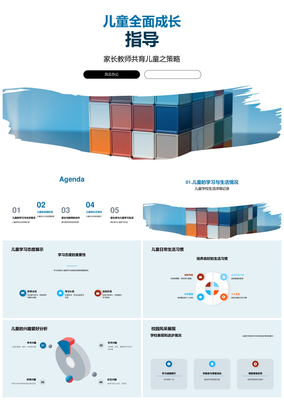 风云办公提供的家校共育儿童阶段成长指导PPT模板,下载格式为pptx,一共28页,作品中文字及图均可以修改和编辑,图片更改请在作品中右键图片并更换,文字修改请直接点击文字进行修改。