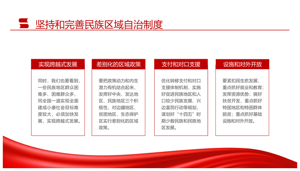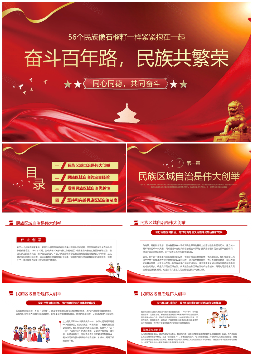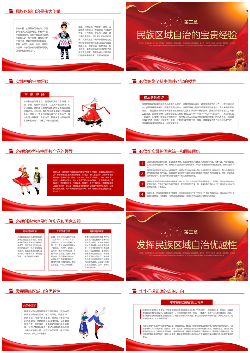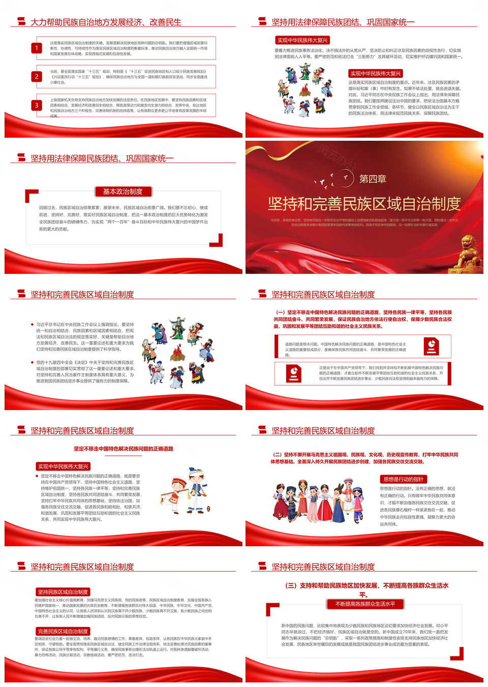 这是一张红色民族区域自治制度党建少数民族群众PPT模板,包含红色、民族区域自治制度、党建、少数民族、群众等主题内容,也可用作红色民族区域自治制度党建、民族区域自治制度党建少数民族、区域自治制度党建少数民族群众、红色民族区域自治制度、民族区域自治制度党建、区域自治制度党建少数民族、自治制度党建少数民族群众、红色民族区域自治、民族区域自治制度、区域自治制度党建、红色民族区域、民族区域自治、区域自治制度、自治制度党建、少数民族群众等PPT场景使用。 风云办公提供的红色民族区域自治制度党建少数民族群众PPT模板,下载格式为pptx,一共29页,作品中文字及图均可以修改和编辑,图片更改请在作品中右键图片并更换,文字修改请直接点击文字进行修改。