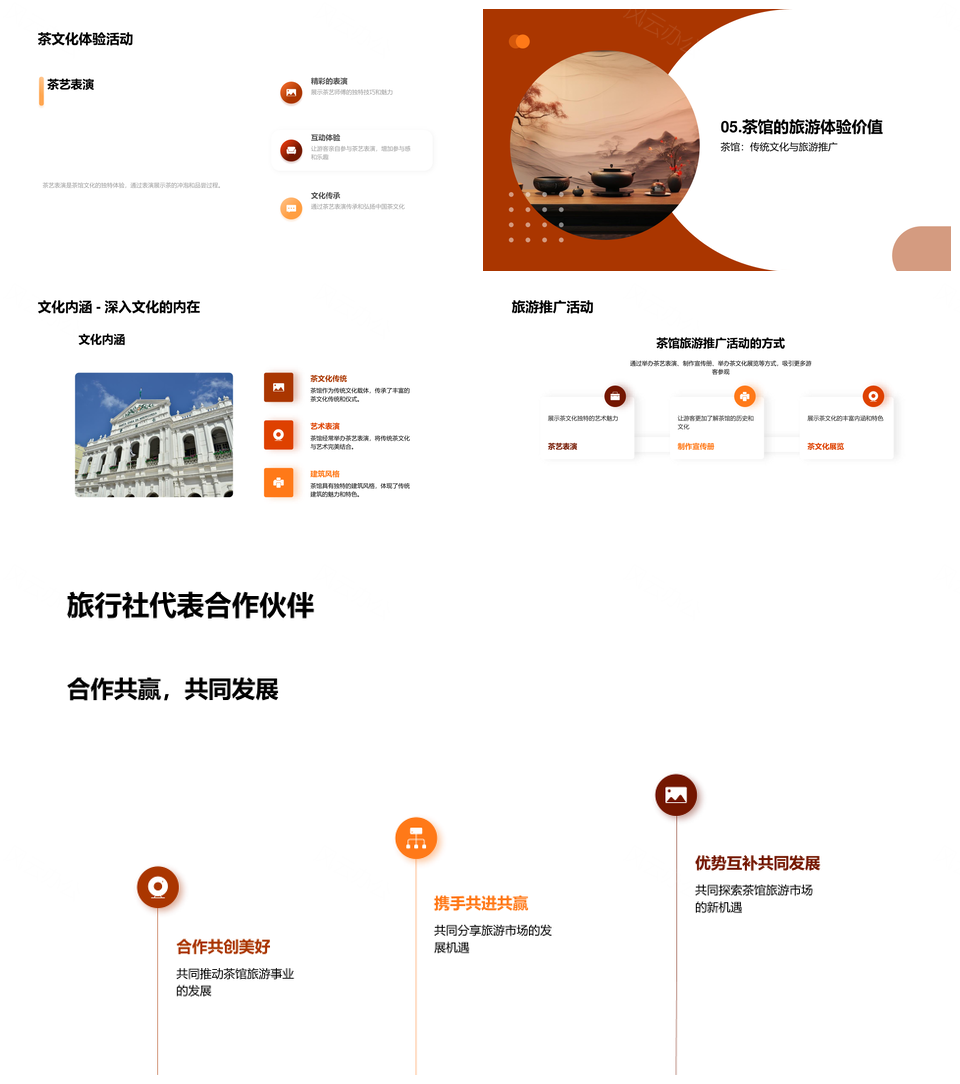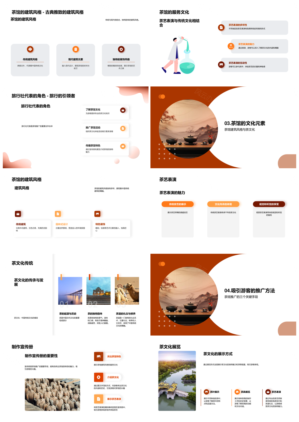 这是一张茶馆旅游推广传统文化历史建筑茶艺休闲场所PPT模板,包含茶馆、旅游、推广、传统文化、历史建筑、茶艺、休闲场所等主题内容,也可用作茶馆旅游推广传统文化历史建筑、茶馆旅游推广传统文化、茶馆传统文化历史建筑茶艺、传统文化历史建筑茶艺休闲场所、推广传统文化历史建筑茶艺、旅游推广传统文化茶艺、茶馆历史建筑茶艺休闲场所、传统文化茶艺休闲场所、历史建筑茶艺休闲场所、旅游推广茶艺休闲场所、茶馆传统文化休闲场所、茶馆历史建筑茶艺、茶馆茶艺休闲场所、旅游传统文化历史建筑、推广茶艺休闲场所等PPT场景使用。 风云办公提供的茶馆旅游推广传统文化历史建筑茶艺休闲场所PPT模板,下载格式为pptx,一共23页,作品中文字及图均可以修改和编辑,图片更改请在作品中右键图片并更换,文字修改请直接点击文字进行修改。
