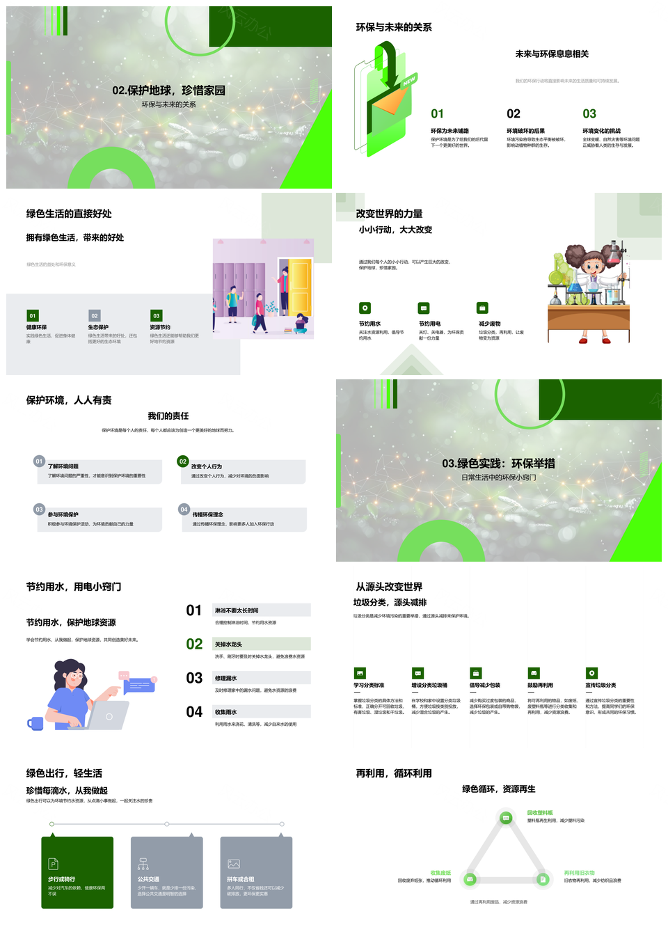校园环保绿色教育创意竞赛节能节水分类志愿行动PPT模板推荐