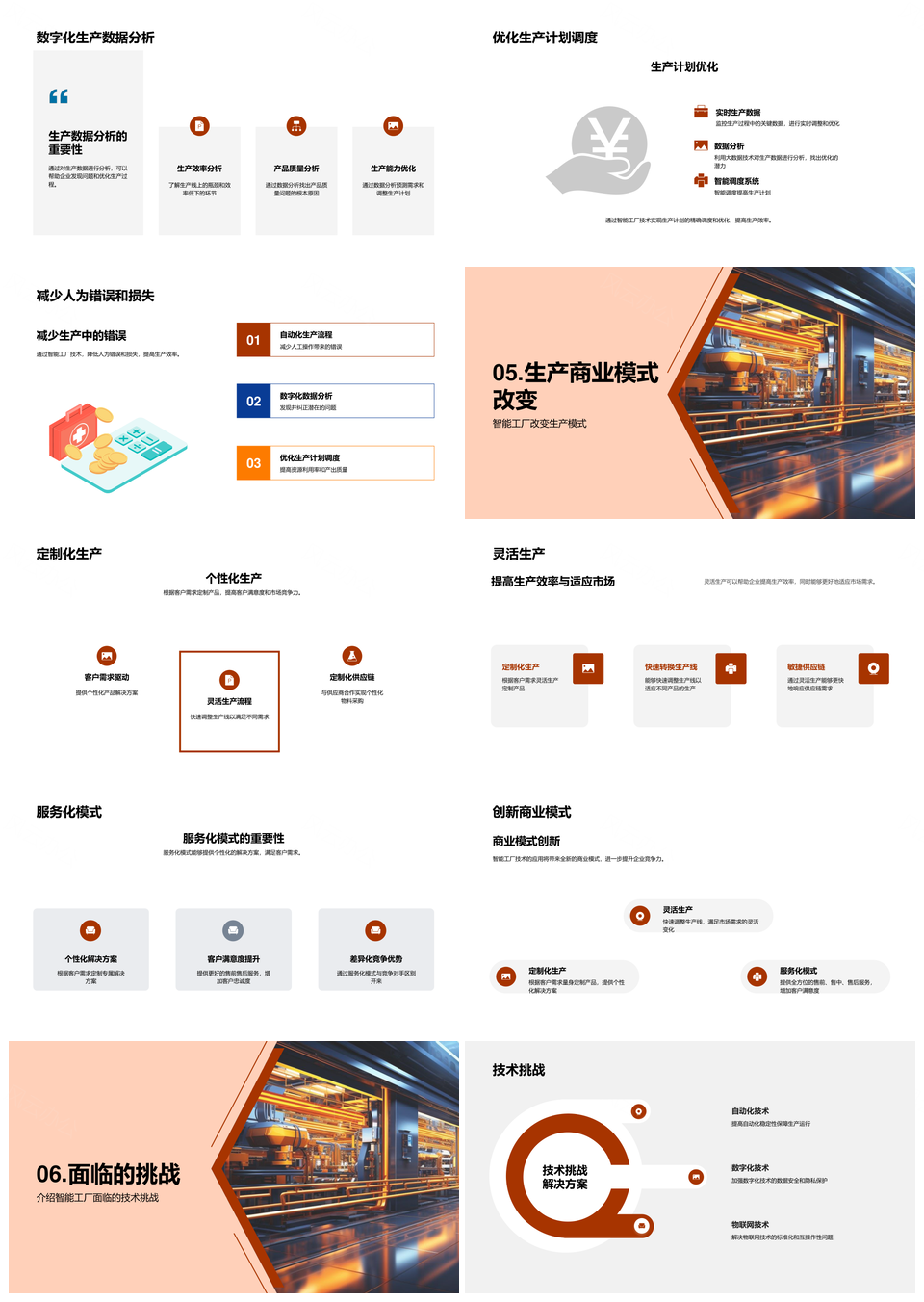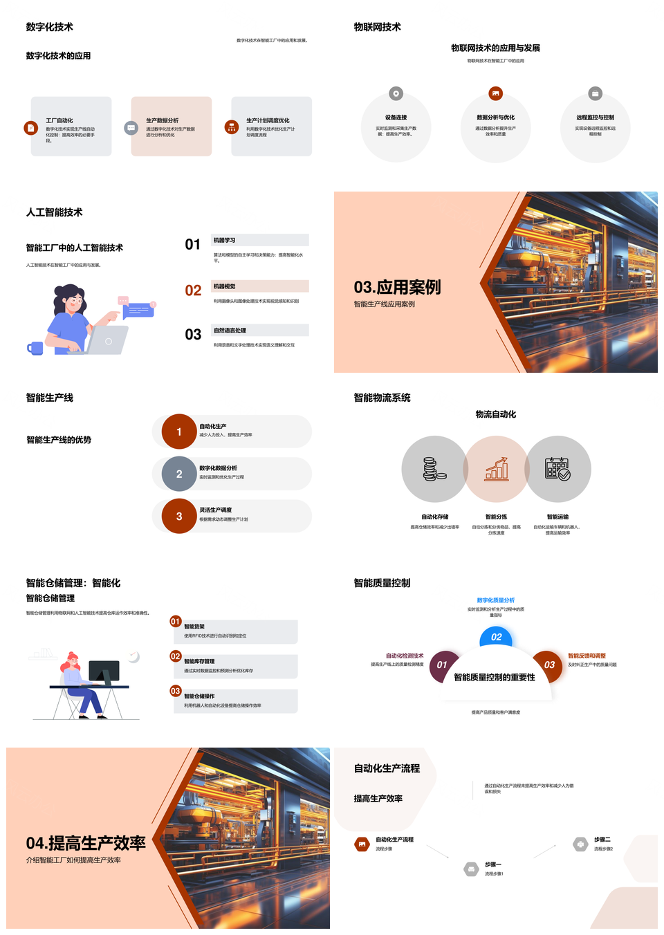 这是一张智能工厂技术应用驱动制造业自动化数字化发展PPT模板,包含智能工厂、技术应用、驱动、制造业、自动化、数字化、发展等主题内容,也可用作智能工厂技术应用驱动、技术应用驱动制造业、应用驱动制造业自动化、驱动制造业自动化数字化、制造业自动化数字化发展、智能工厂技术应用、技术应用驱动、应用驱动制造业、驱动制造业自动化、制造业自动化数字化、自动化数字化发展、智能工厂技术、技术应用、应用驱动、制造业自动化等PPT场景使用。 风云办公提供的智能工厂技术应用驱动制造业自动化数字化发展PPT模板,下载格式为pptx,一共38页,作品中文字及图均可以修改和编辑,图片更改请在作品中右键图片并更换,文字修改请直接点击文字进行修改。
