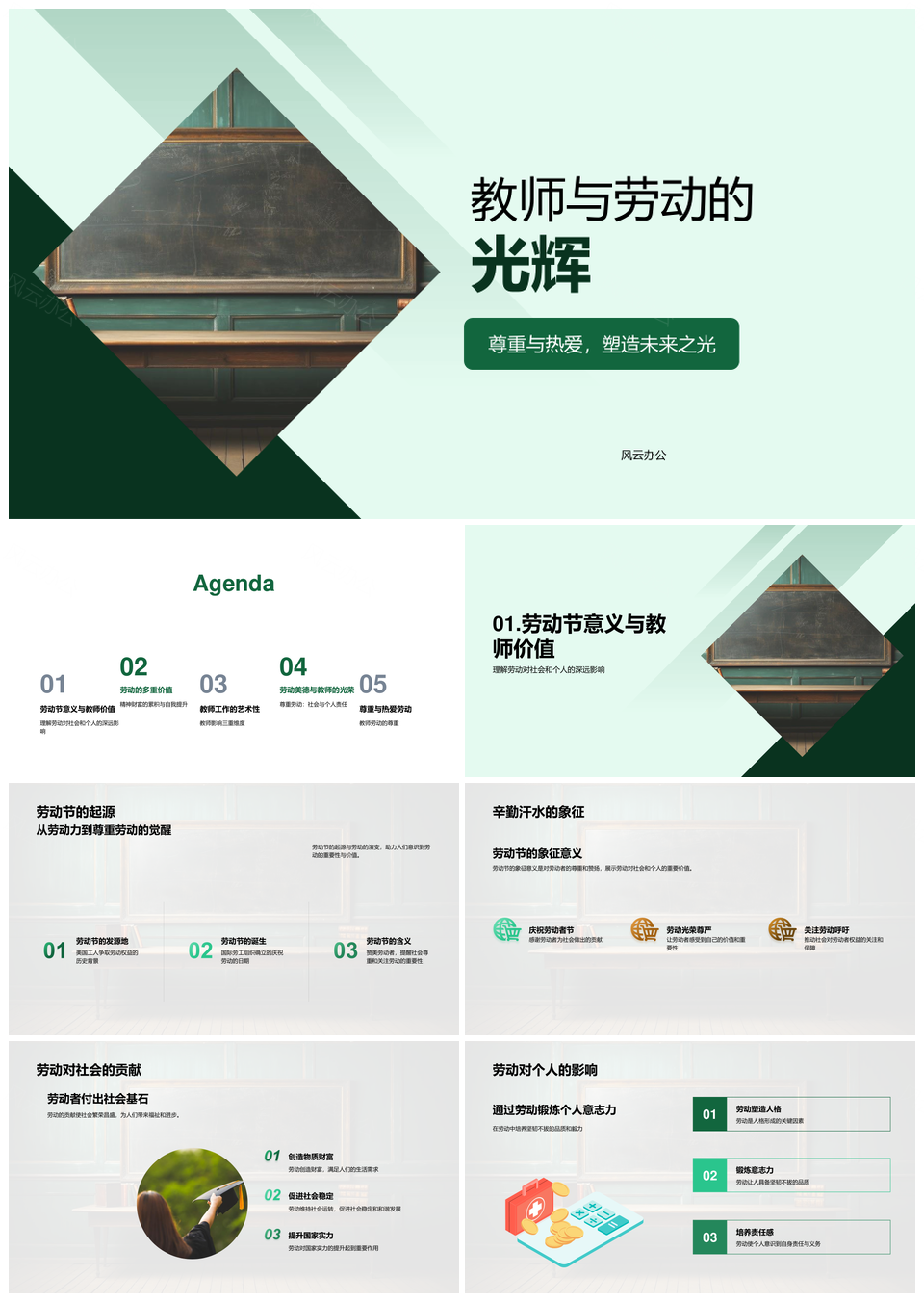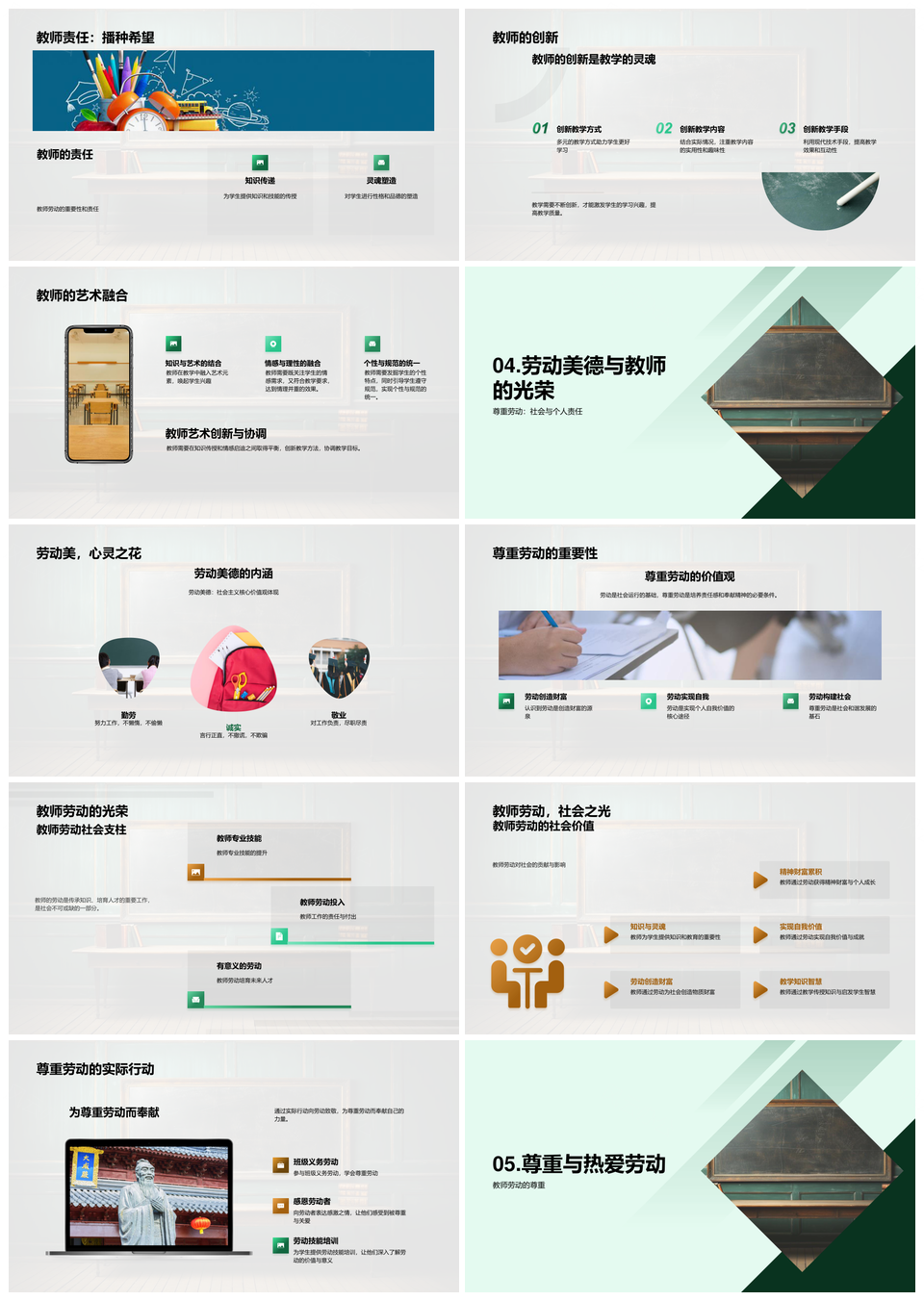 敬师重劳教师社区职责劳动节黑板影响力PPT模板