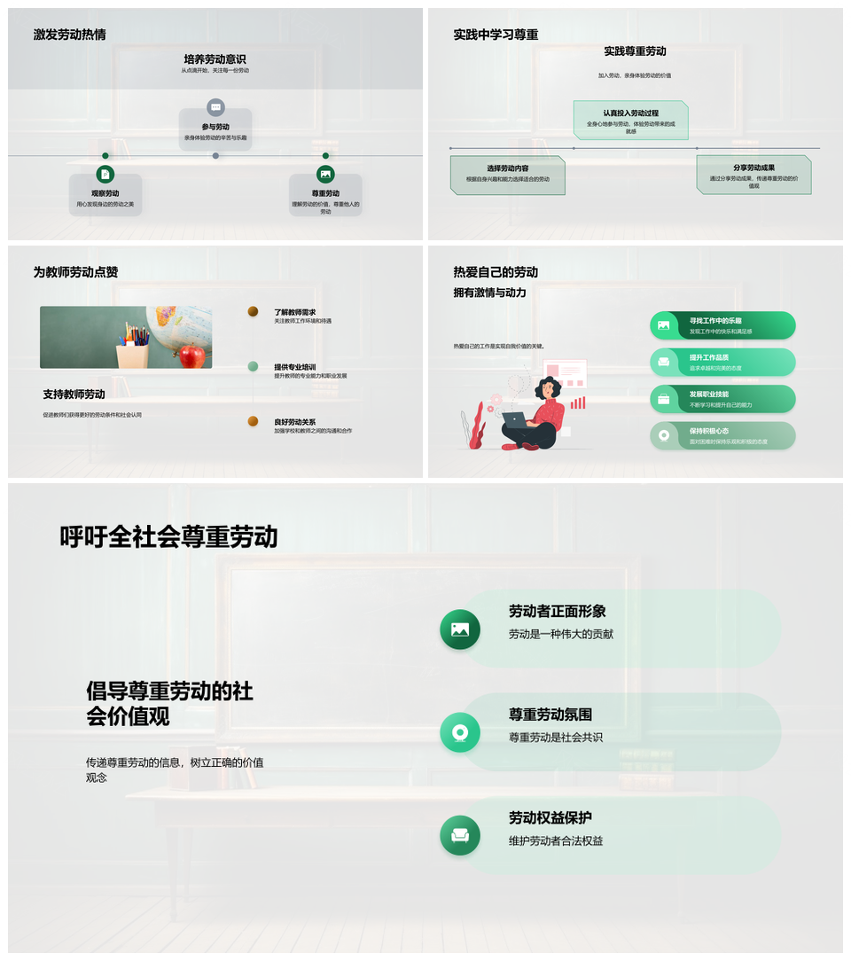 清新绿色五一劳动节主题班会PPT模板
