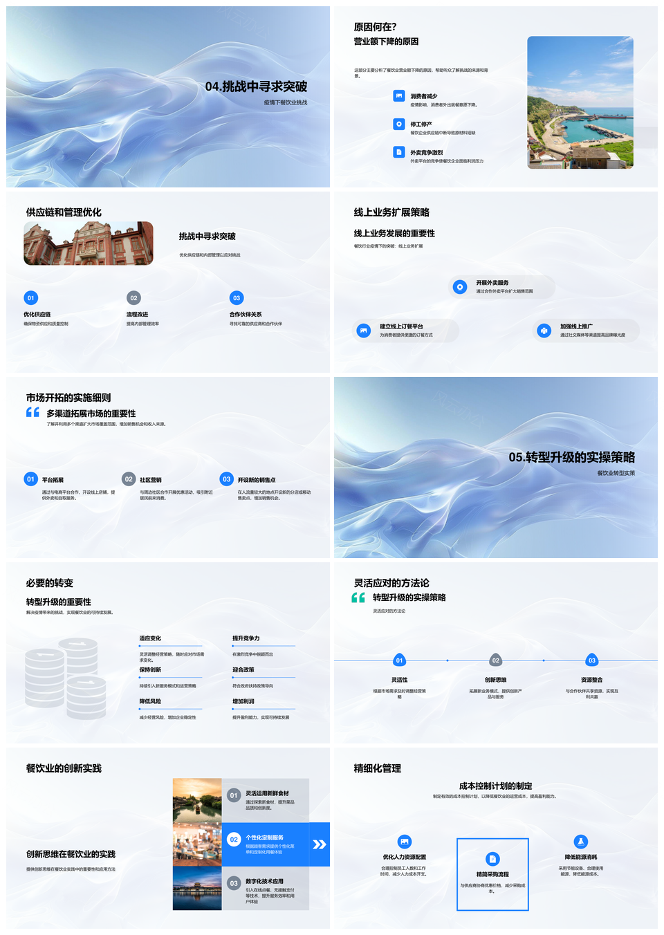 餐饮业疫情转型策略风险应对消费变化行业格局市场机遇创新服务政策PPT模板推荐