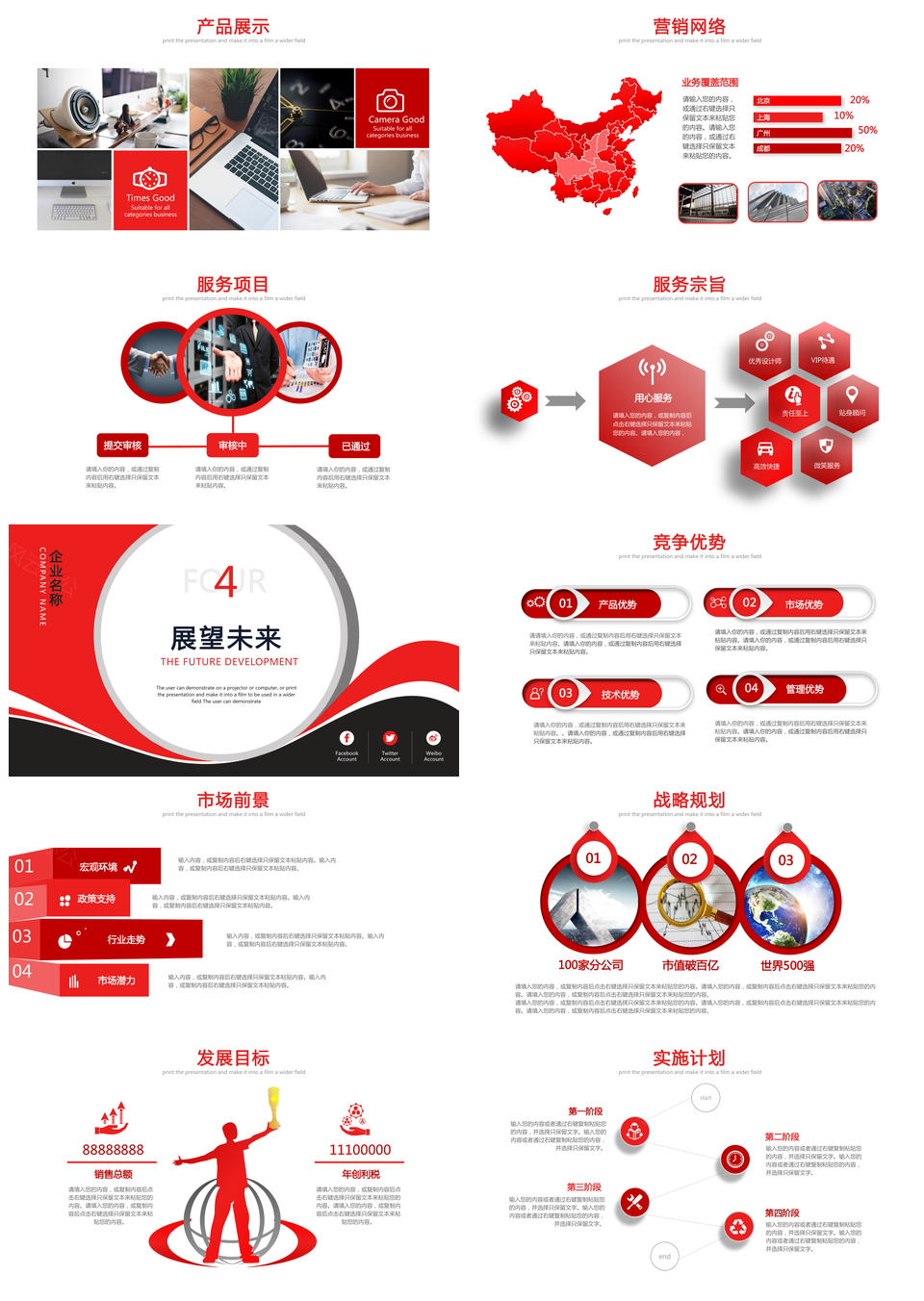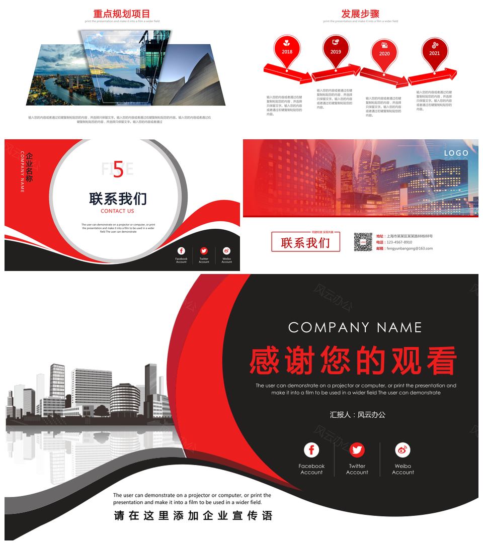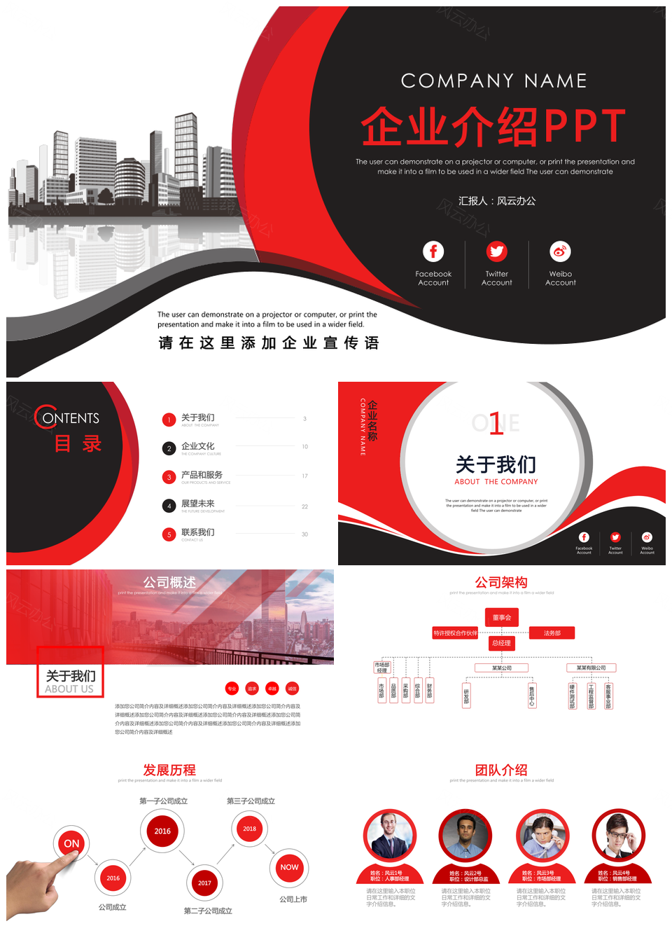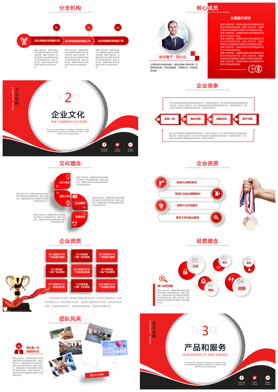 风云办公提供的红色大气通用企业介绍PPT模板,下载格式为pptx,一共20页,作品中文字及图均可以修改和编辑,图片更改请在作品中右键图片并更换,文字修改请直接点击文字进行修改。