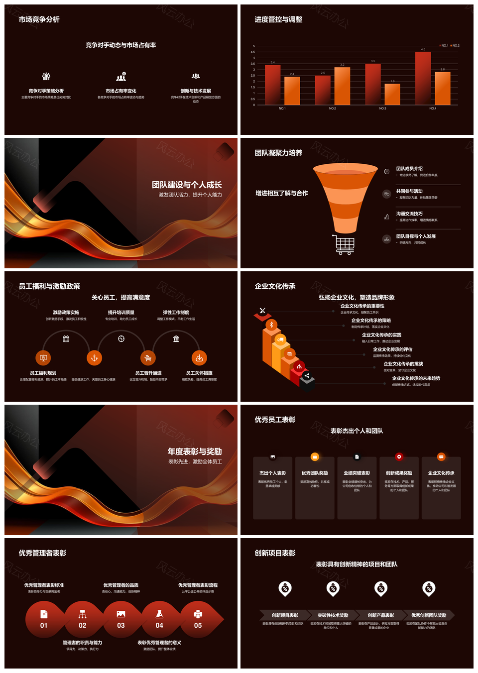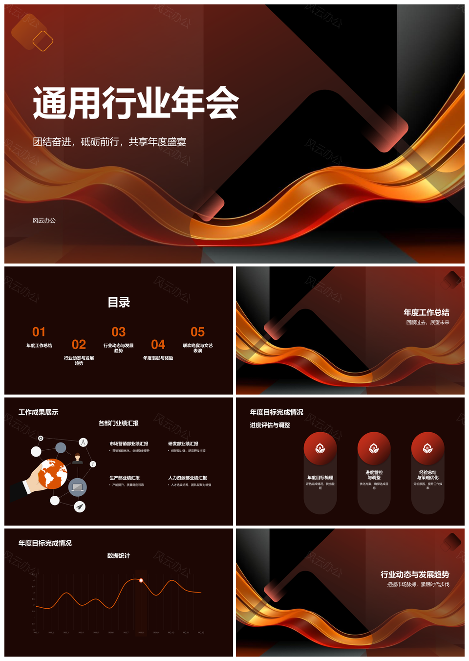 风云办公提供的红金渐变企业金融商务年会PPT模板,下载格式为pptx,一共22页,作品中文字及图均可以修改和编辑,图片更改请在作品中右键图片并更换,文字修改请直接点击文字进行修改。