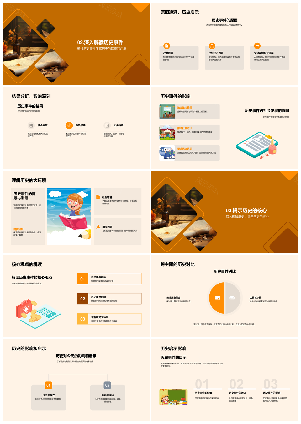 2025古代卷轴历史事件背景影响后果人物反思PPT模板