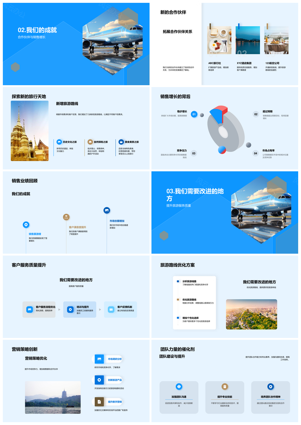 旅游业绩总结竞对合作销售增长服务营销创新路线产品优化PPT模板