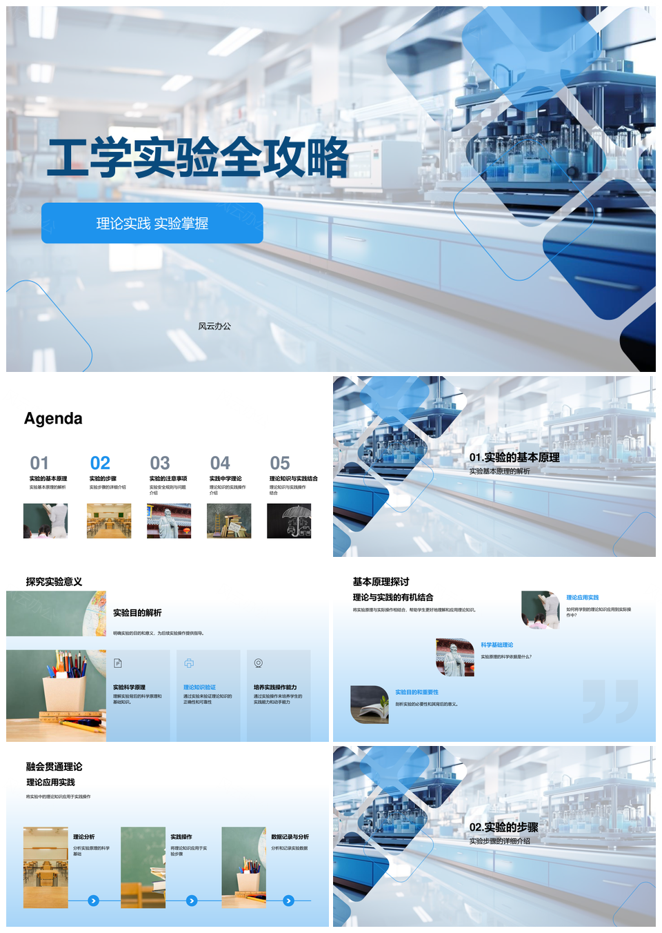 风云办公提供的工学实验理论实践操作步骤安全应对PPT模板,下载格式为pptx,一共23页,作品中文字及图均可以修改和编辑,图片更改请在作品中右键图片并更换,文字修改请直接点击文字进行修改。