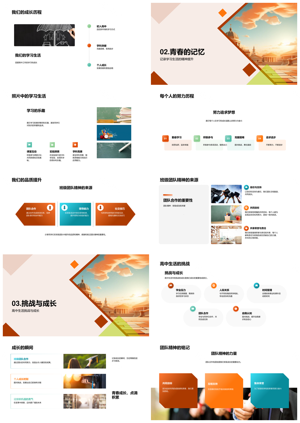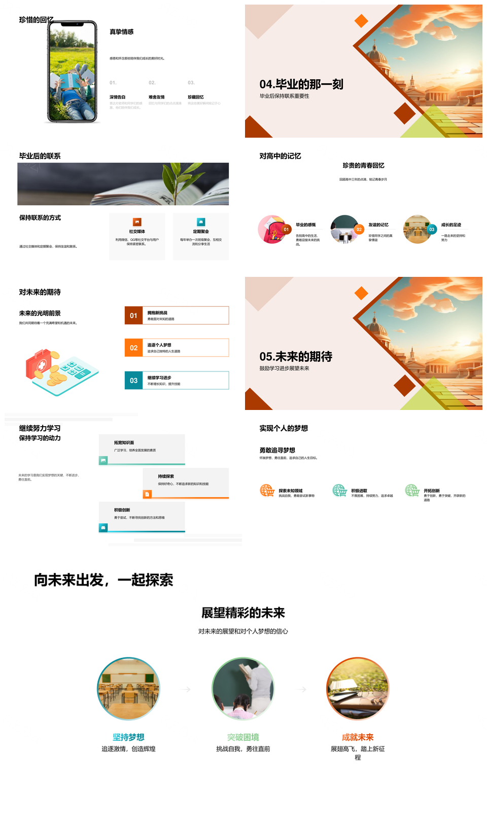 母校心印三年同窗砥砺成长路PPT模板推荐