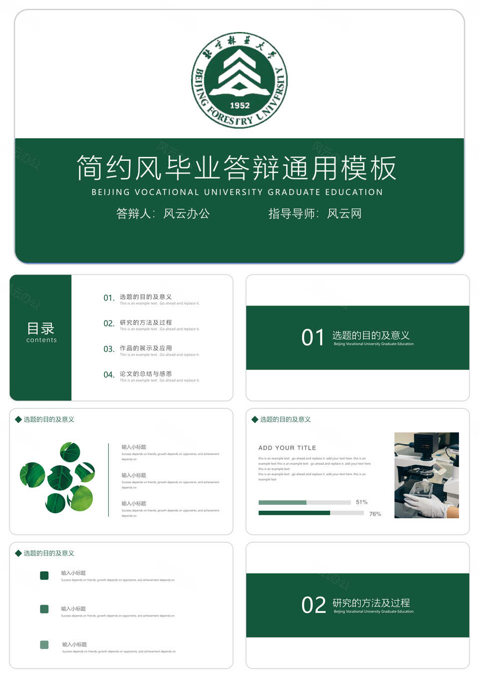 绿色大气简约风完整框架毕业答辩学术报告PPT模板