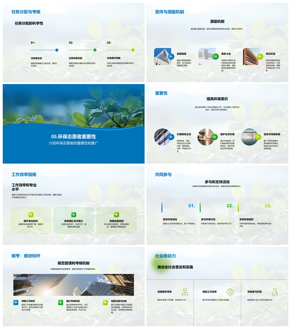 这是一张20XX年度环保志愿者生态培训招募考核PPT模板,包含20XX年度、环保志愿者、生态培训、招募考核等主题内容,也可用作环保志愿者生态培训招募考核、环保志愿者生态培训招募、志愿者生态培训招募考核、生态培训招募考核、20XX年度环保志愿者生态培训、20XX年度环保志愿者培训、环保志愿者培训招募、志愿者培训招募考核、环保志愿者招募考核、20XX年度生态培训考核、生态培训考核、环保志愿者生态培训、环保志愿者培训、生态培训招募、培训招募考核等PPT场景使用。 风云办公提供的20XX年度环保志愿者生态培训招募考核PPT模板,下载格式为pptx,一共26页,作品中文字及图均可以修改和编辑,图片更改请在作品中右键图片并更换,文字修改请直接点击文字进行修改。