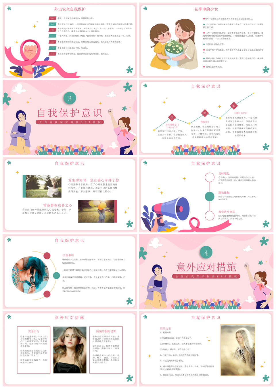 风云办公提供的手绘卡通女性安全自我保护意识教育PPT模板,下载格式为pptx,一共18页,作品中文字及图均可以修改和编辑,图片更改请在作品中右键图片并更换,文字修改请直接点击文字进行修改。