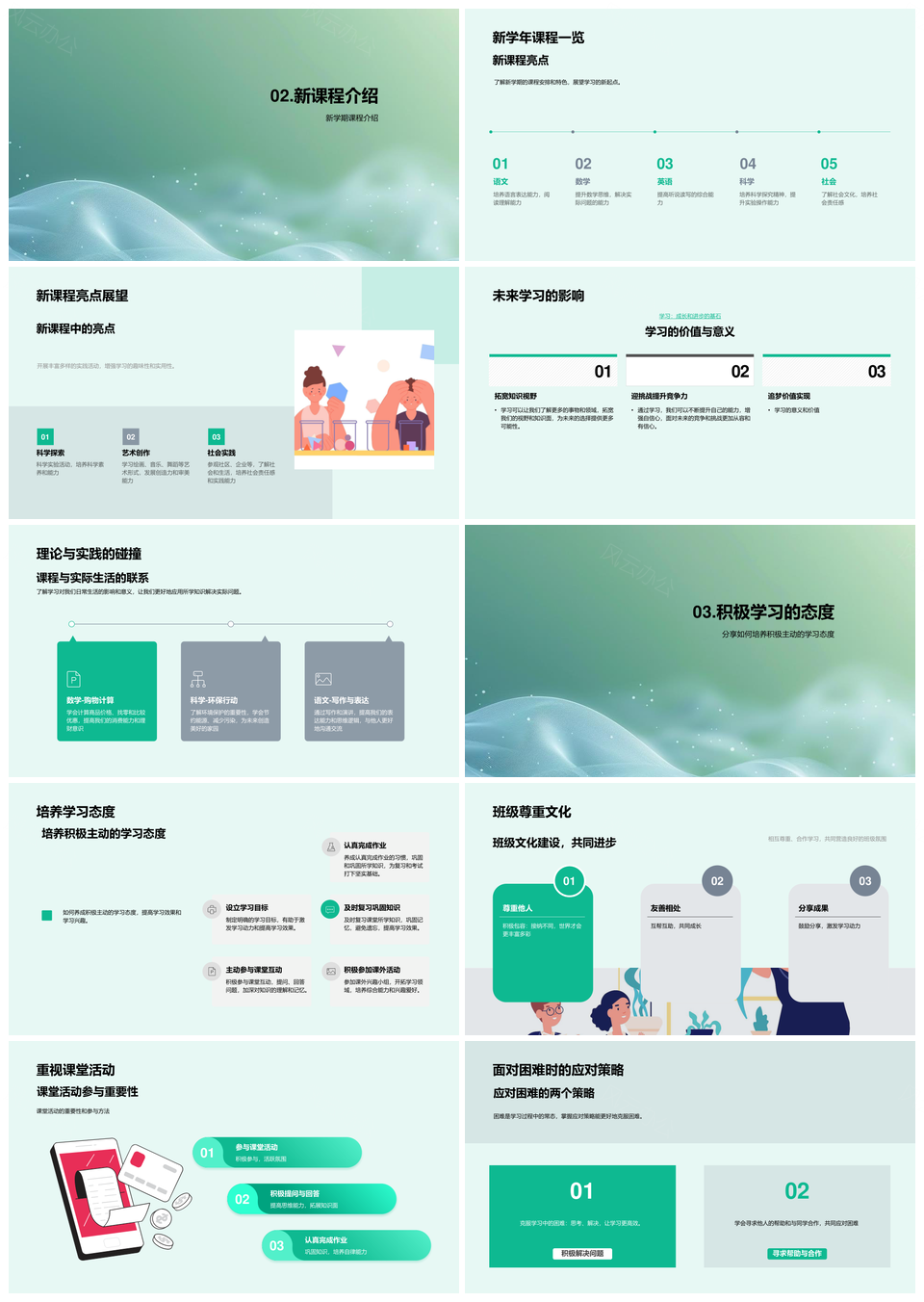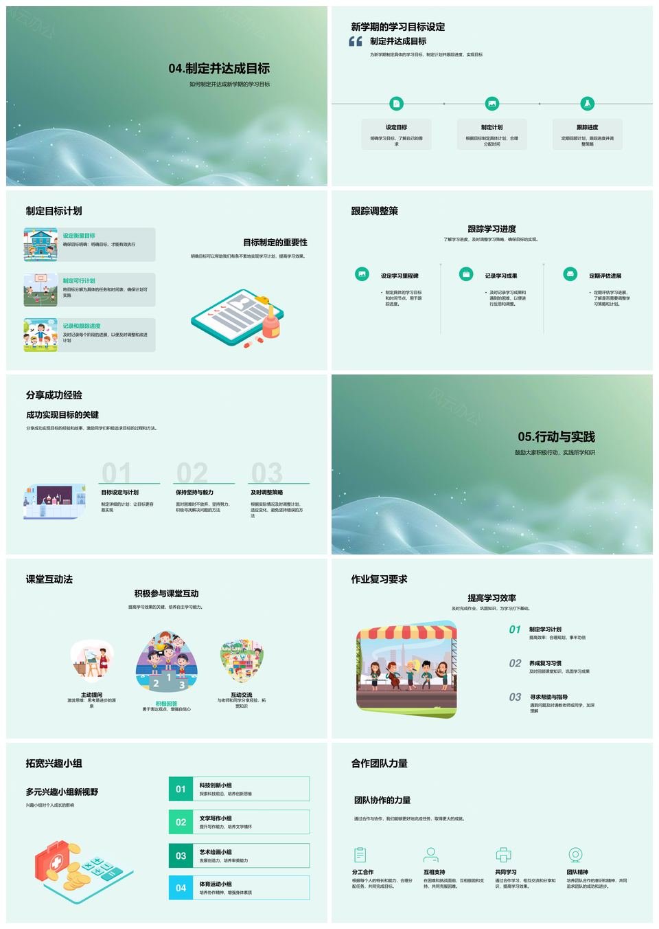 学期目标规划策略进步新课积极学习行动实践课堂互动作业复习PPT模板推荐