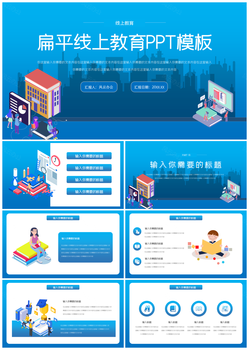蓝色扁平风线上教育PPT模板