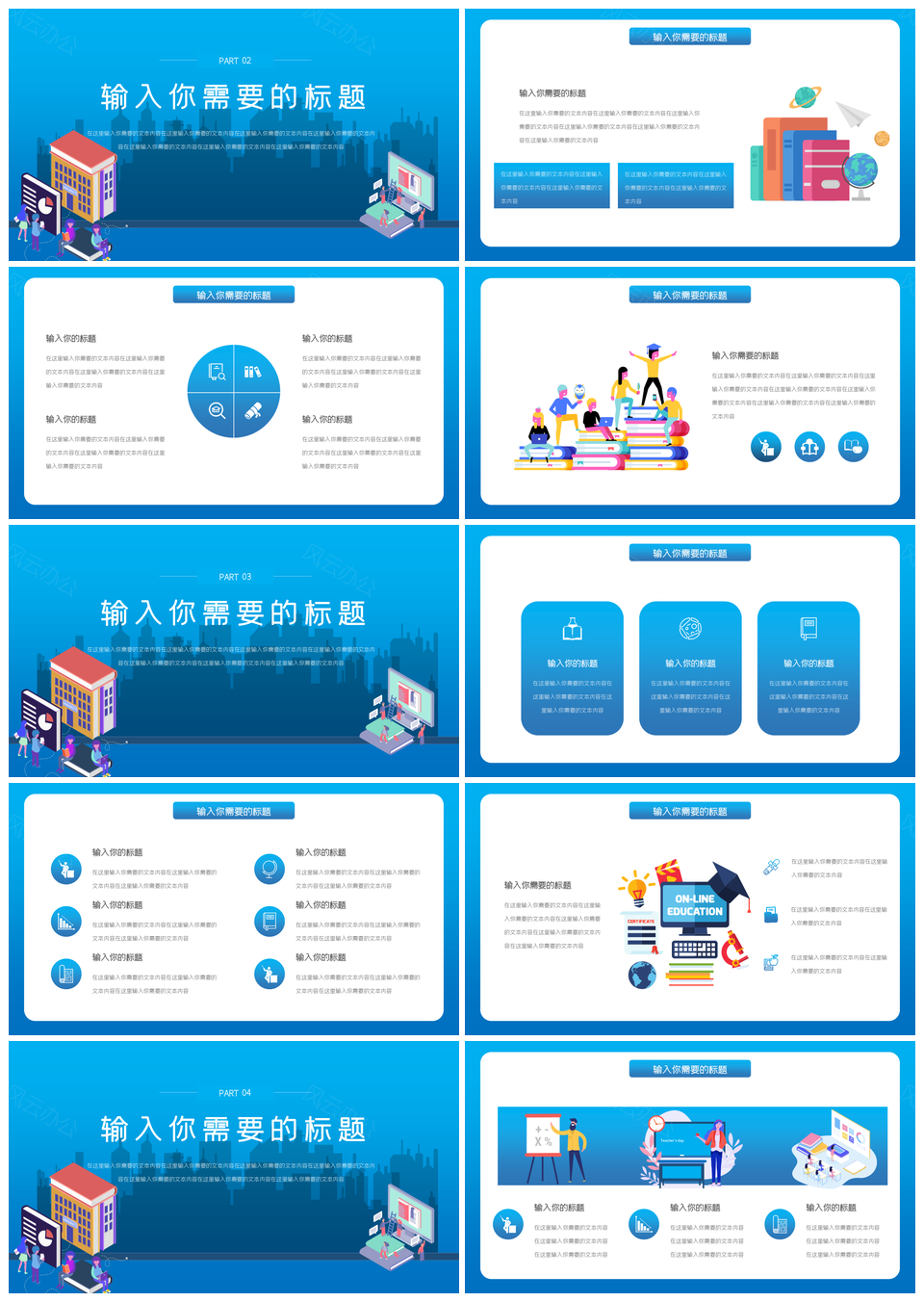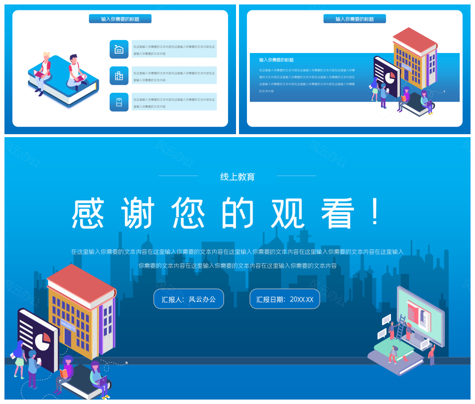 蓝色线上教育PPT